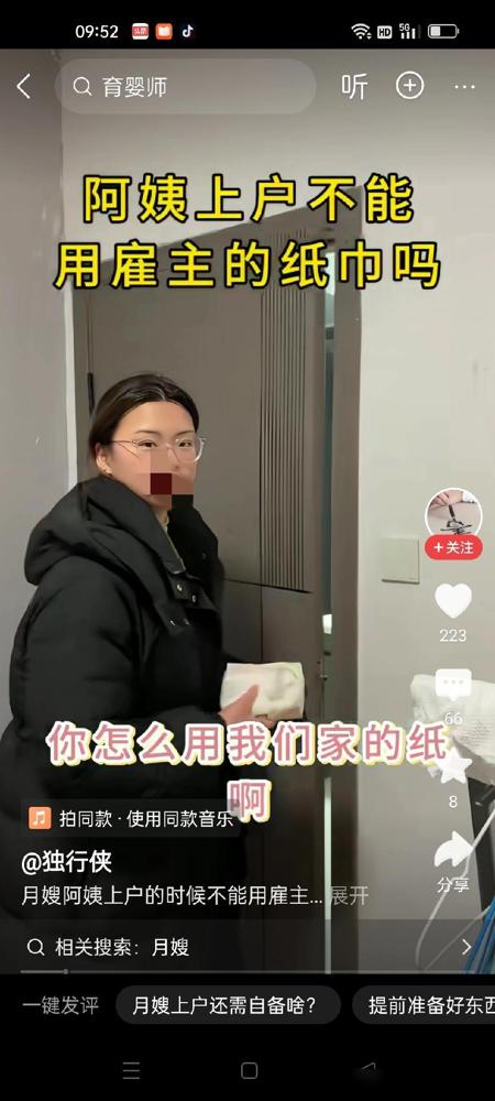 雇主看到保姆拿了一盒卫生纸去上厕所,就问她,你怎么用我们的纸啊?保姆回过头问,咱们家保姆额外需要准备纸巾吗? 看完这段真的有点心塞,起因居然就是因为一卷纸,雇主非要保姆先下楼自己买一包回来,保姆气不过直接扔了纸巾当场离职了。 我感觉这已经不是节省或者讲原则的问题了,哪怕是对待路人,遇到这种救急的情况,正常人大概率都不会这么绝。 这种极端的防备心理和边界感,说实话挺让人窒息的,感觉雇主压根没把保姆当成一个在家里共处的人。 我更在意的是那个细节,保姆明明都说了自己现在很急,结果得到的回复还是冷冰冰的那句“不行,你下去买”。 这种所谓的“公私分明”放在家政这种服务场景里,真的挺让人寒心的,毕竟人心都是肉长的。 我觉得在这种环境下干活,保姆肯定得时刻紧绷着,估计喝口水、用个杯子都要担心被说。 雇主可能觉得自己占了理,但为了省这点纸钱搞到家里没人干活,这笔账算得也是挺失败的。 说到底,如果连这种最基本的人情救急都算计得这么清楚,那最后保姆甩手走人一点也不意外,打工也是要有尊严的。