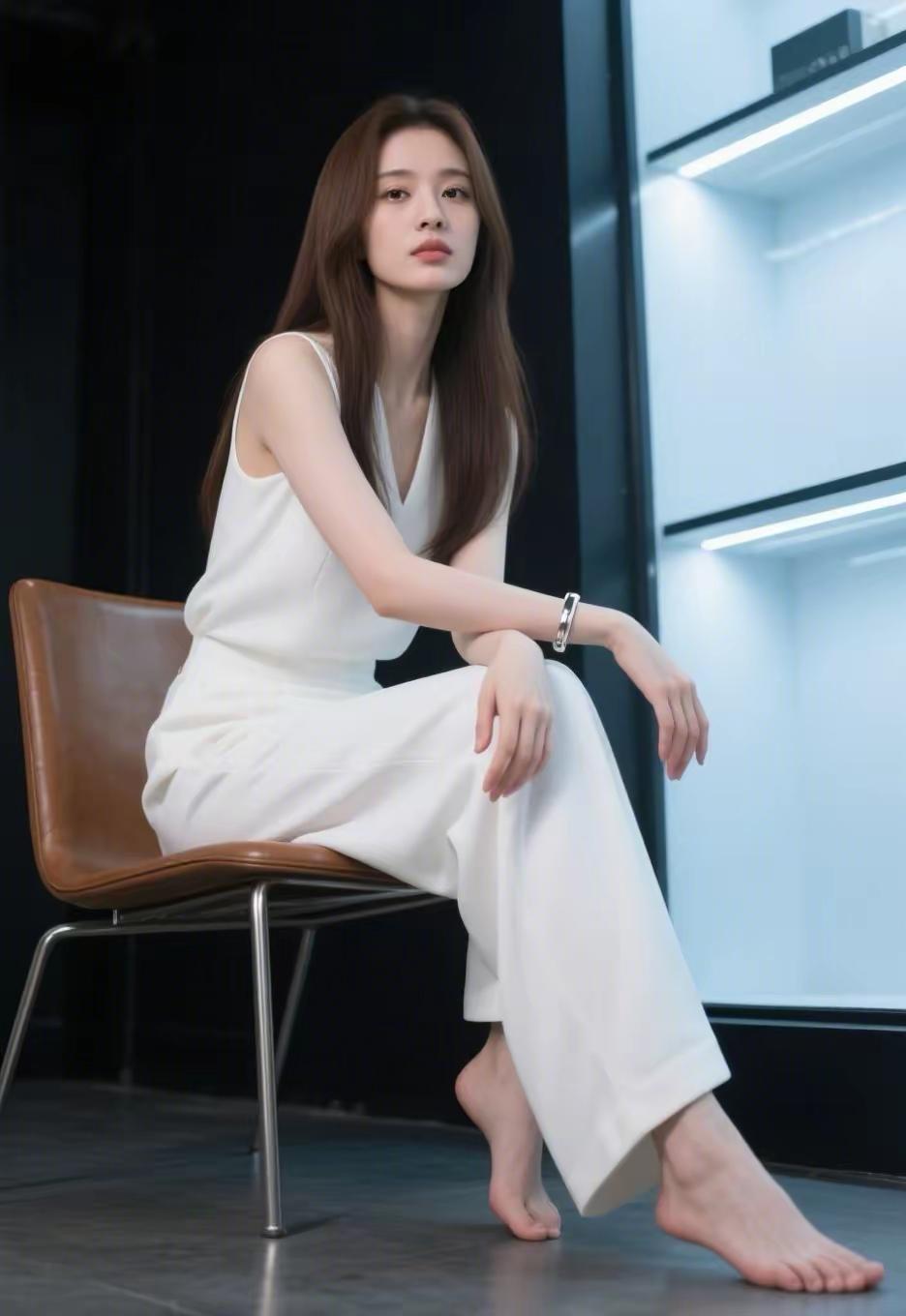 极简风穿搭,白色连衣裙搭配金属手镯,简约优雅。