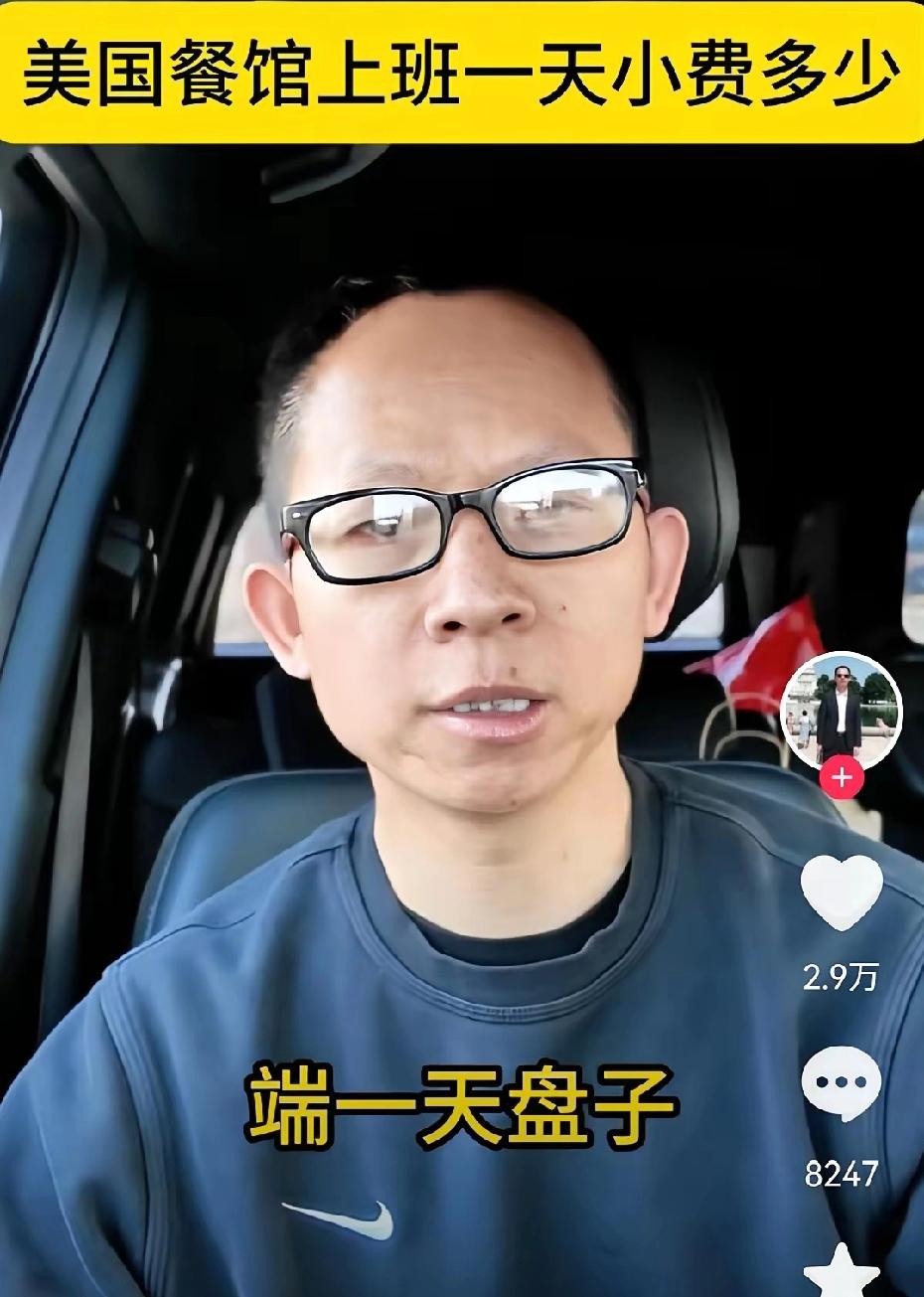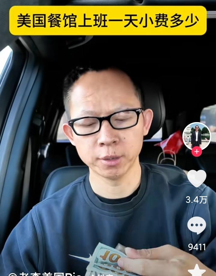 润人嘴里,没有一句实话, 这个自称在美国打工的润人,实际上应该做中介,顺便在简体中文网卖货, 为了生意,他讲了自己的故事: 他说自己在美国餐馆端盘子,一天的小费收入是513美元, 按他的说法,一个月可以收入15000美元,一年18万美元,这收入,在美国小镇,可以买一套200平米的房子了, 但是有眼尖的网友发现,他收到的小费,是100美元的大票子, 美国人都这么有钱吗? 吃一碗12美元的面条,给100美元小费吗?
