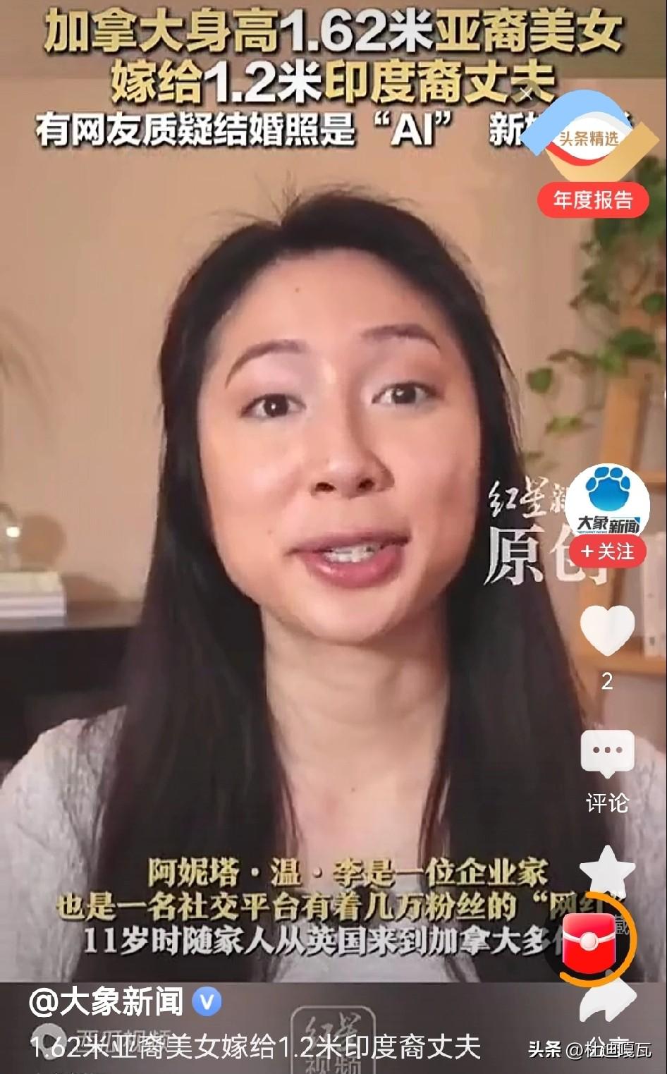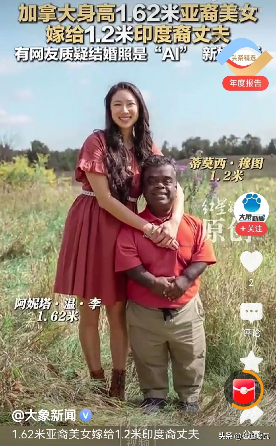 真是辣眼睛, 看看这位加拿大的亚裔女子,嫁给了身高只有1.2米的印度裔男子,而且也看不出这位印度男子有什么过人之处。 而自己则拥有良好的条件,不但是一位企业家,而且还是有几万粉丝的网红,家里的经济条件自不必说,如果是为了财富根本说不通,难道这就是这些女性所独有的爱好吗?