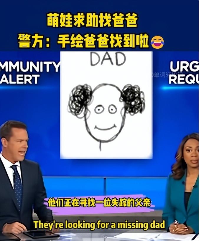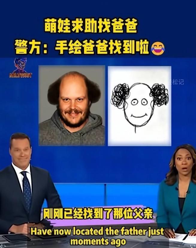 当美国一小孩走丢之后,画出其父亲的画像,所有人看了都傻眼了。 美国街头发生趣味插曲:一名走失的小女孩向"帽子叔叔"求助,在鼓励下用蜡笔勾勒父亲模样。画中人物顶着夸张的圆脸,耳畔毛发如杂草丛生,透出孩童特有的幽默视角。新闻节目播出时,主持人直呼"这艺术创作如何寻亲?"戏剧性的是,节目中途警方通报父亲寻获,并附上真实照片。屏幕内外瞬间笑场——女孩的"小丑式"画像竟神还原父亲的不羁发型,天真笔触尽显本质。 真的应了那句,小孩怎么会说谎呢?