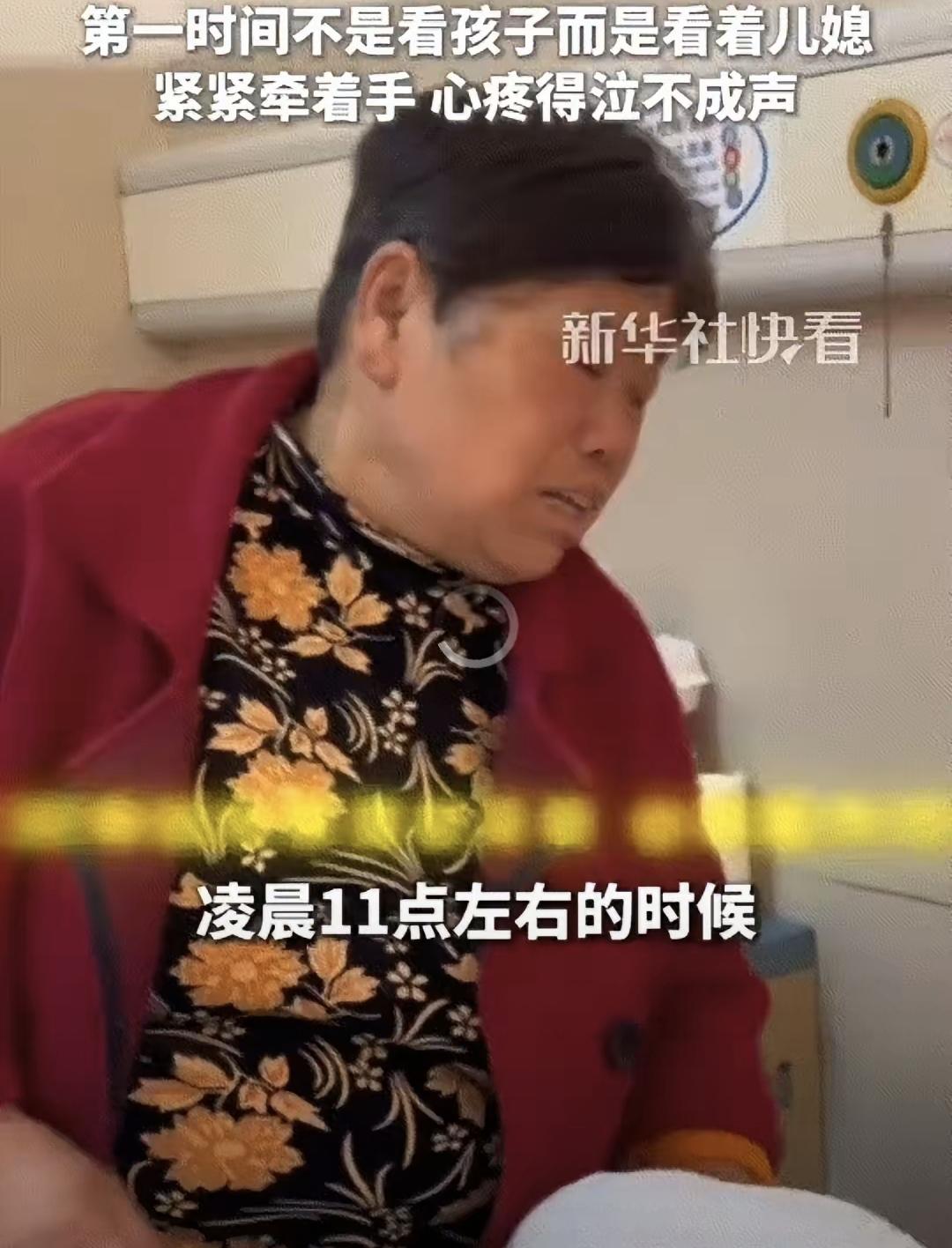 昨天在安徽阜阳一家医院,凌晨生孩子的儿媳没想到爸妈不在身边,婆婆却赶来了。儿子怕二老年纪大担惊受怕,生完才打电话通知。谁知道电话一挂,婆婆和公公立马开车往医院赶。 到病房的时候都快凌晨三点了。老人顾不上脱外衣,直奔儿媳床边。第一句话是“你受罪了”,手紧紧抓着儿媳没松。视频里她眼眶全红,说了句“儿媳妇,你辛苦了”就忍不住哭了。 没人第一时间问孩子性别,也没人急着看新生儿。护士后来都说,这位婆婆全程盯着监护仪,连正常数值都记住了,守了六个多小时没合眼。 有些亲情不用说太多。一个眼神,一次牵手,比什么仪式都实在。