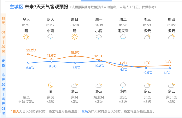 明天是“四九”的第一天,有一股冷空气将率先从东路影响杭州,虽然这股冷空气总体强度不强,但会打压最高气温,明天的最高气温会从“2”字头缩进“1”字头,杭城白天最高气温会降至15℃,且受本轮冷空气影响,白天偶尔还会有小雨现身,明早出门可以带上雨具。