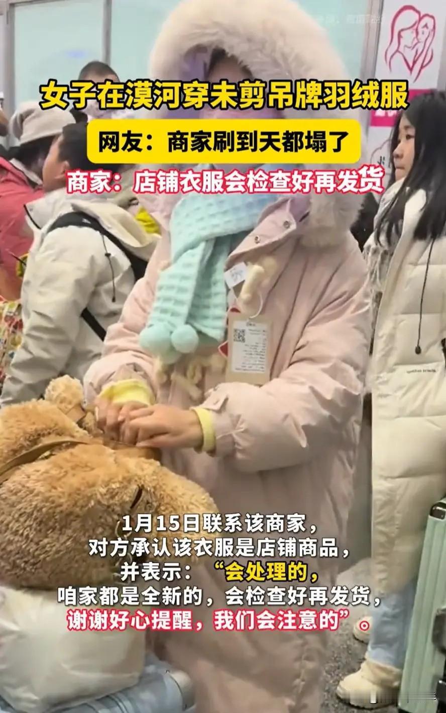 黑龙江漠河,一男子旅游时突然觉得一名排队的女生不错,可走到前面一看,却瞬间下头,因为她的羽绒服上面竟然挂着一个大大的吊牌,男子猜测大概率这是准备回去退掉的,有意思的是,这个事火了后,羽绒服商家也在网上看到了这件衣服。 男子在漠河景区排队时,远看女生穿粉色羽绒服打扮清爽,心生好感,走近发现其羽绒服吊牌未拆,信息清晰可见,便拍下视频吐槽女生疑似穿完退货,视频随即在网络传播。 视频引发网友热议,部分网友调侃女生把“七天无理由”用到极致,认为穿后退货会让后续买家体验变差;也有网友认为可能是女生忘剪吊牌,无需过度指责;还有网友艾特涉事品牌商家,戏称商家看到视频会心态崩溃。 1月15日媒体联系涉事羽绒服商家,对方确认衣服为自家商品,回应会处理此事,并称店铺发货前会检查商品,保证全新,同时感谢网友提醒,会加强品控管理。 “穿完就退”的网购行为并非个例,部分消费者利用“七天无理由退货”规则,将商品穿去聚会、旅游使用后退货,这种行为会让商家承受损失,被穿用过的商品难以二次销售,成本最终会转嫁到其他消费者身上。 “七天无理由退货”的初衷是保障消费者权益,而非纵容恶意退货,消费者享受权利的同时,应遵守诚信底线,不能以损害商家利益为代价占便宜。此次漠河女生的情况,若只是忘剪吊牌无可厚非,但若确是恶意退货,便是违背网购规则和基本道德的行为。 网购平台和商家也需完善应对机制,明确“商品完好”的判定标准,对频繁恶意退货的用户采取限制措施,才能维护正常的网购秩序,保护商家与合法消费者的权益。 各位读者你们怎么看?欢迎在评论区讨论。