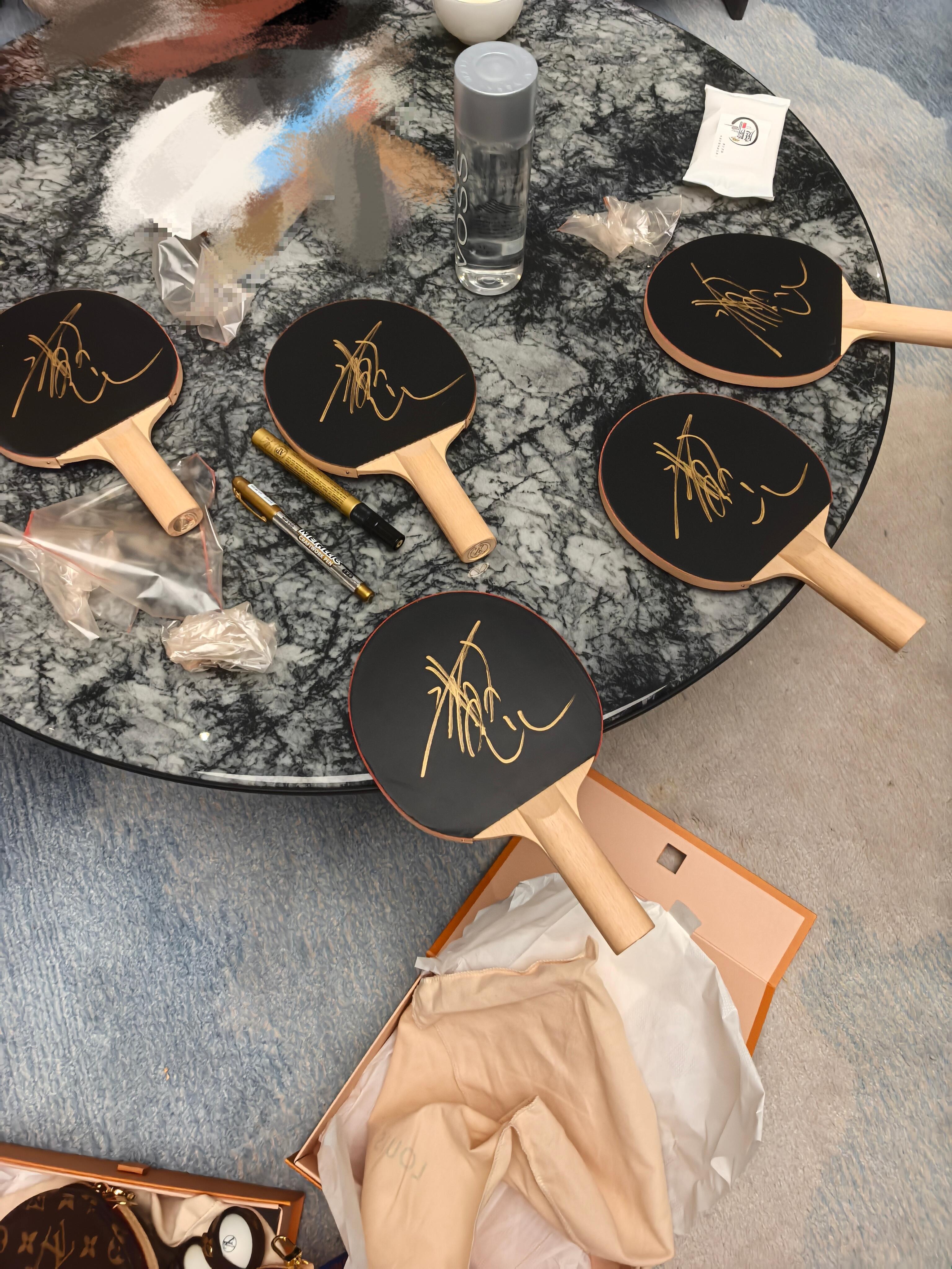 王楚钦最新合影,签了好多球拍陈文浩:和头哥新年第一聚!开心呀