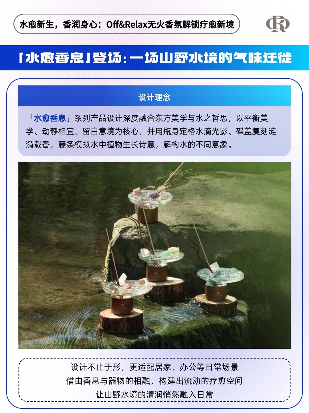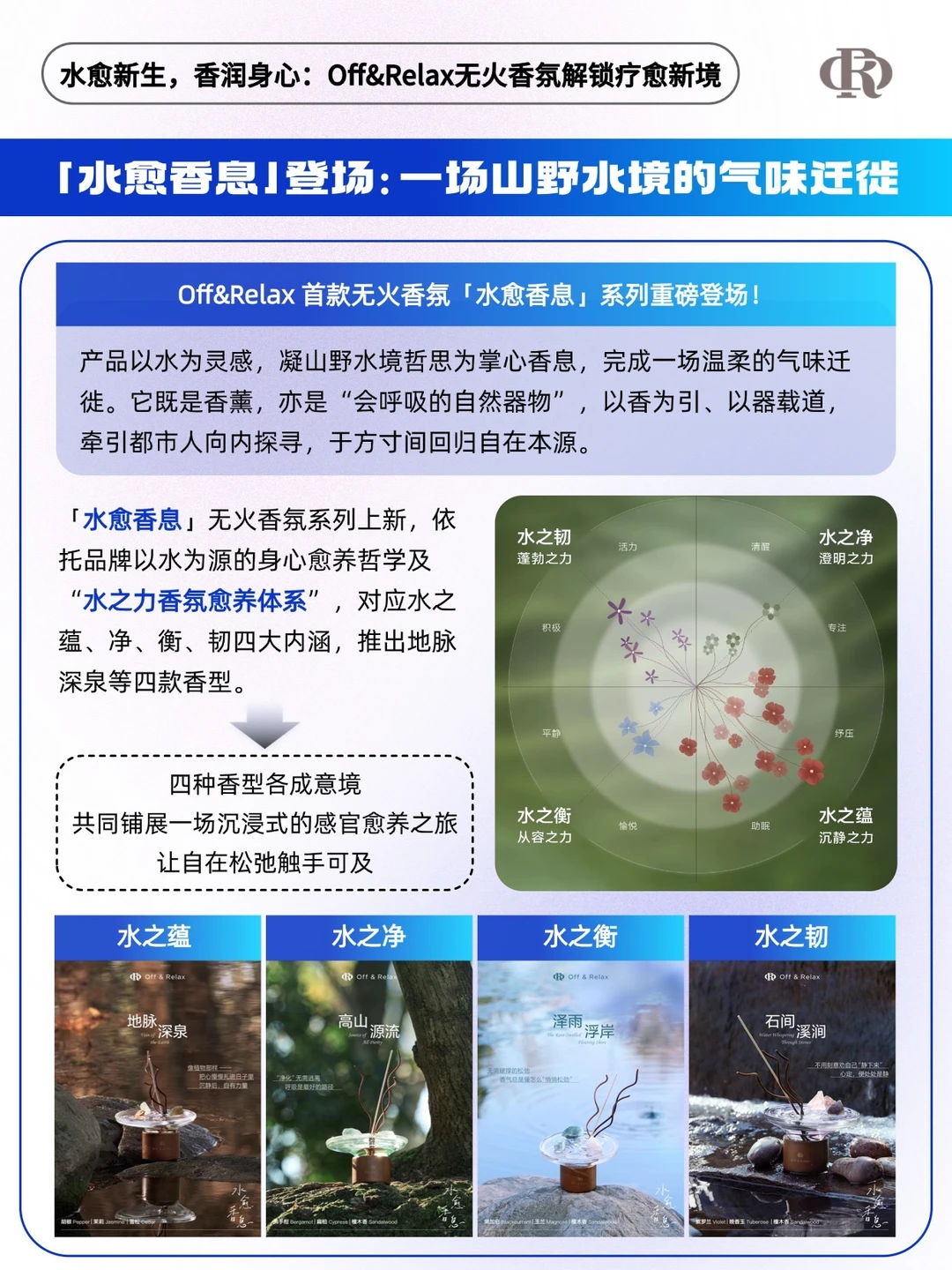 而香氛,也从曾经的“附加亮点”逆袭成核心决策点之一:大家要的不只是持久留香,更渴望借一缕气味卸下疲惫,找到身心与情感的共鸣;循着这份需求趋势,Off&Relax重磅推出品牌首款无火香氛产品——「水愈香息」无火香薰[哇R]