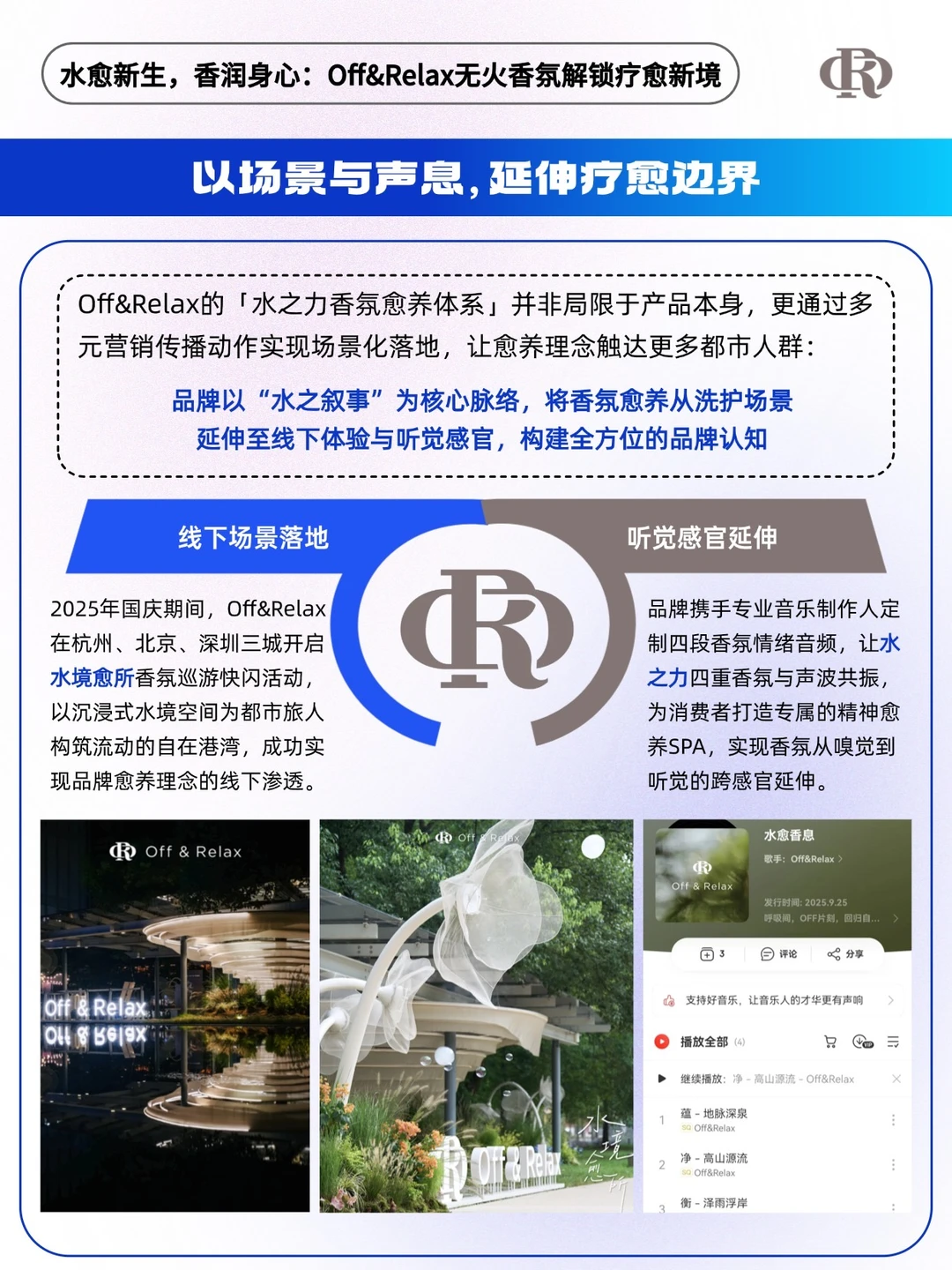 🟡此举不仅深化了Off&Relax「亚洲头皮整全愈养专家」的定位,更生动诠释了“水愈新生,由发至心”的品牌内核,勾勒出“以水之力,重启头皮与身心自愈生态”的图景。