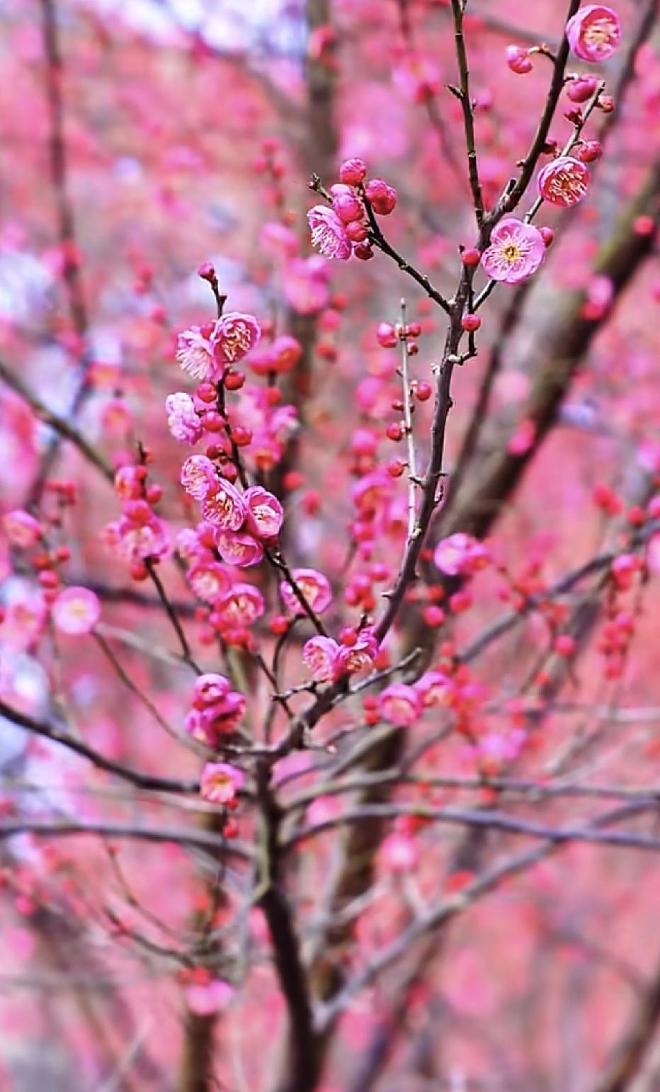 歌乐山的红梅开得正艳,赏花的人络绎不绝,冬日的寒风中,一株株红梅傲然挺立,它那娇艳欲滴的红花瓣迎风舞动。而周围的绿叶已经凋零,但它们留下的养分和呵护,为红梅在寒冬中盛开提供了坚强后盾。