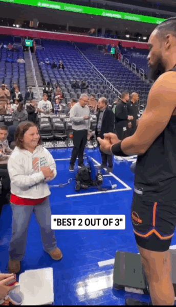没想到身为联盟恶人的狄龙,还有这么暖心的一面! 今天太阳队在客场挑战活塞队输球后,没想到平时一副生人勿近的狄龙,居然赛后和一位小粉丝现场玩起了石头剪刀布的游戏,关键还玩了好几轮,末了还把他的鞋子亲自送给了小球迷。 不得不说狄龙这个行为还是值得尊重,毕竟身为球星,对球迷起码还是要有基本的尊重和耐心,👏