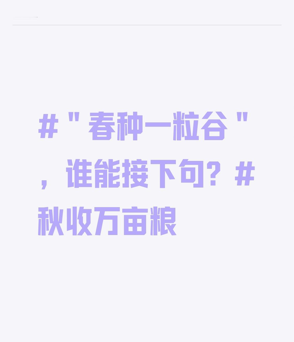 "春种一粒谷",谁能接下句?秋收万亩粮