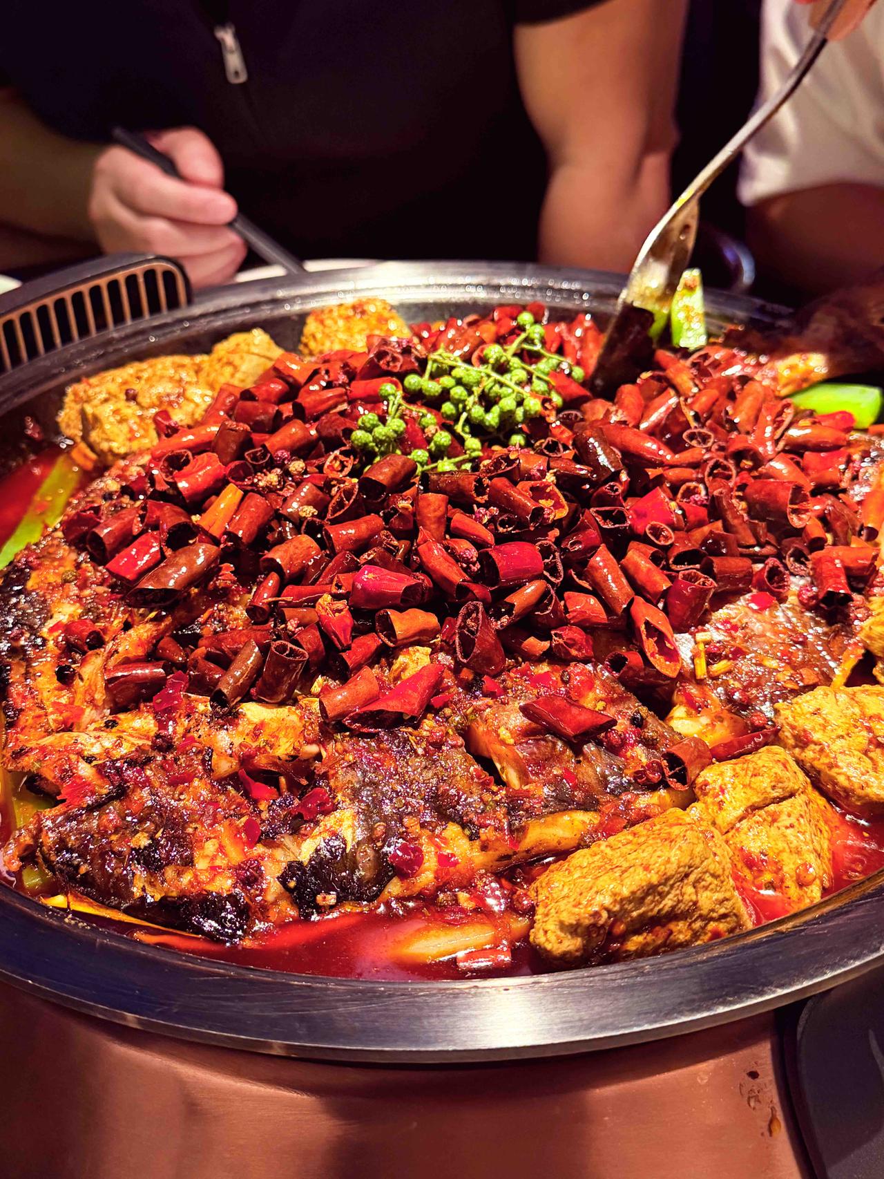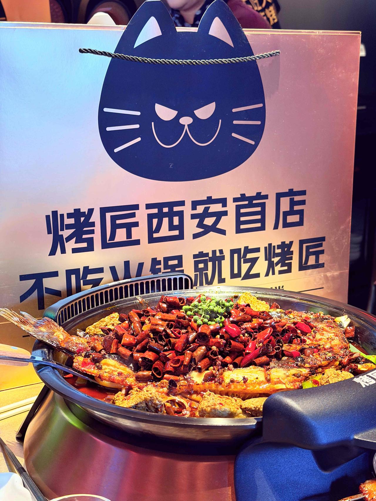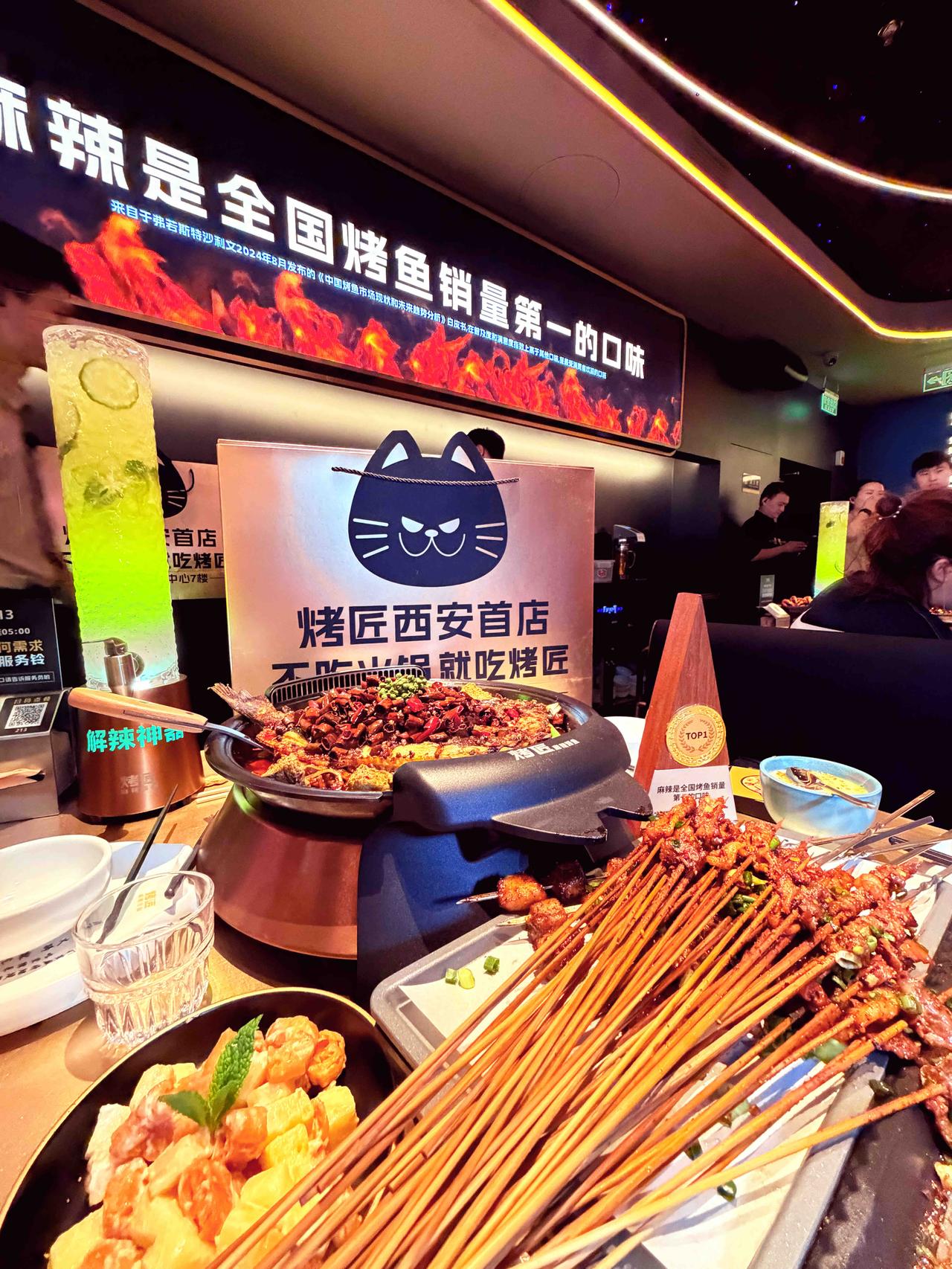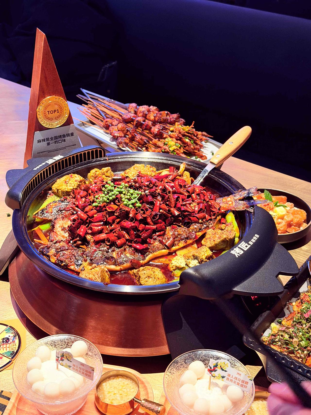 久等了!川渝烤鱼翘楚烤匠,携一城烟火气,落子西安小寨赛格7楼。 招牌麻辣烤鱼,皮酥肉嫩,麻与辣在舌尖交织出热烈的欢歌,鲜香油润,一口便俘获心与胃。 黑豆花嫩滑吸汁,莴笋、土豆、豆干浸润在醇厚汤底里,每一口都是酣畅淋漓的满足。宜宾把把烧更是宵夜的灵魂,鸡胗弹牙、肥肠软糯、五花肉焦香,先卤后烤的工艺,让每一串都饱含烟火韵味。 包浆豆腐嫩如凝脂,佐以折耳根的独特鲜香,风味别具一格;桂花酒酿圆子冰甜沁爽,恰好中和烤鱼的热辣,堪称点睛之笔。抬头可见璀璨星空顶,浪漫氛围感拉满,在此小酌小聚,惬意万分。 ✨地址:小寨赛格7楼 烤匠麻辣烤鱼
