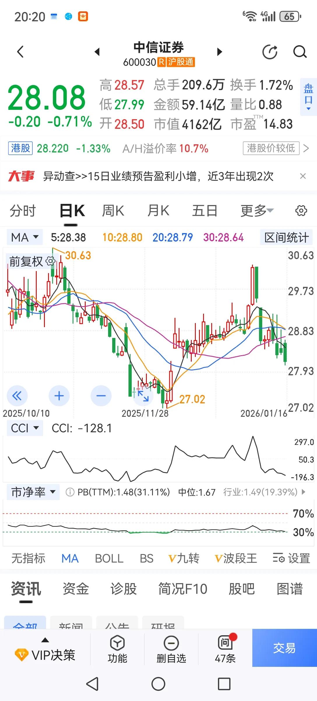 中信证券又遭减持,雪上加霜。今晚越秀资本公告:拟出售不超过中信证券1%的股份,看来下周一券商难止跌了。券商不止跌,大盘要止跌就更难了。