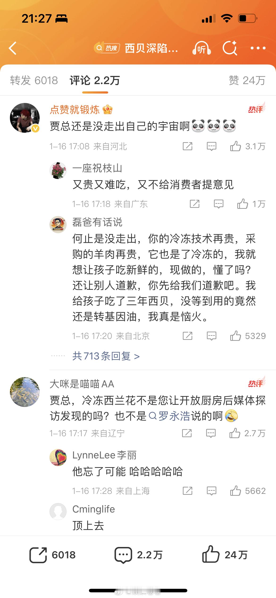 贾国龙让罗永浩赔偿相应损失 贾老板这波“索赔通牒”来得猝不及防,只是发言前真该翻翻网友辣评!闭店102家、亏损超5亿的账,网友早看清核心:不是被“污蔑”拖垮,而是预制菜不透明的信任崩塌,以及不听专业建议的强硬应对。罗永浩都直言“没企业能仅靠被黑倒闭”,自己的锤子科技就是前车之鉴,西贝的问题本质是经营与沟通失当。与其执着于追责索赔,不如正视消费者对“知情权”的诉求,毕竟网友的眼睛,从来比公关话术更清醒。