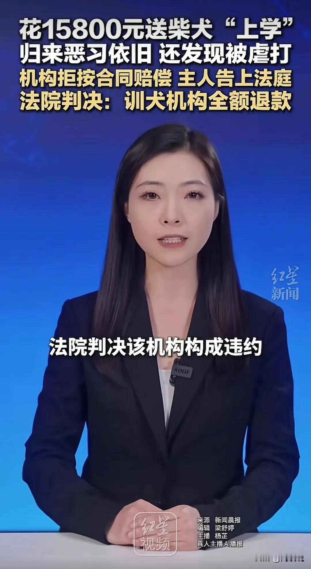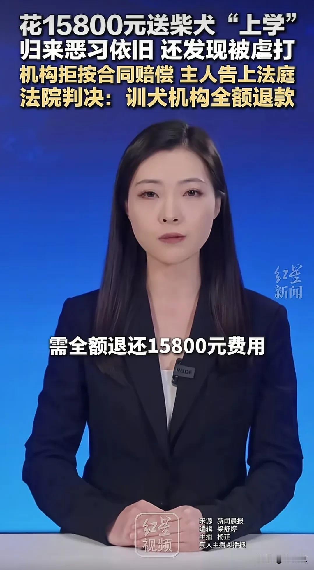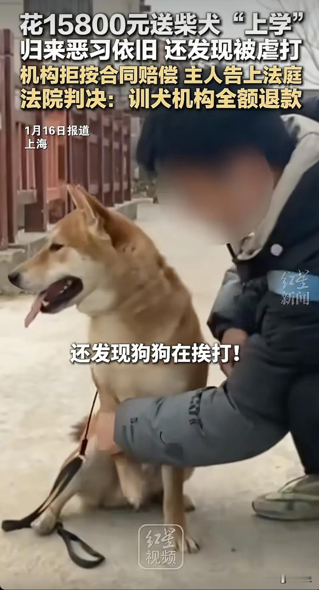 上海,男子花15800元送狗狗去“上学”,没想到,狗狗送回来时,竟发现狗狗恶习依旧没改,甚至还发现狗狗被人虐待,男子要求机构索要赔偿,结果却屡遭拒绝,男子越想越气,于是,将机构告上了法庭!法院判了! 喜欢养狗的人就知道,一些狗狗会有“拆家”,护食等行为,为了让狗狗改掉这些陋习,狗主人不惜花钱将狗狗送去培训机构“教育”,希望回来后是一只听话,安分的好狗狗。 据媒体1月16日报道,上海,周先生家养的柴犬“旺财”经常会拆家,甚至喂养的时候,还有护食试图咬主人的恶习,这让周先生头疼不已。 直到有一天,周先生在网上看到有一个培训机构,专门驯养狗狗改掉这些坏习惯,并承诺训练无效全额退款,于是,周先生毫不犹豫花了15800元给狗狗报了培训班,没想到,狗狗“毕业”后,周先生不仅发现狗狗这些恶习没有改掉,甚至还发现狗狗身上有多处伤痕, 后来周先生查看机构发布的视频了解到,原来,这家机构所谓的训练方式,竟是通过虐打等方式进行的!因狗狗坏习惯并没有改变,周先生要求机构按合同规定进行赔偿,机构对此却拒绝赔偿,于是,周先生将机构告上了法庭! 最后,经过法院的综合判定,该机构没有履行合同义务,判决机构构成违约,需全额退还15800元费用。 有网友认为:一些柴犬性格不稳定,喜怒无常,不服从训练,就得通过挨打方式训练,或者是考虑其他犬种 也网友说:可以通过挨饿的方式让狗狗学会温顺,不应该用暴力解决。 说到底,男子本意只是让狗狗改掉恶习,而不是希望狗狗在培训时受罪,每一只狗狗,在主人的眼里像是自己的孩子,更何况该机构并没有履行合同约定,改变狗狗的陋习,所以机构应按约定对男子进行赔偿。 对此你们怎么看?