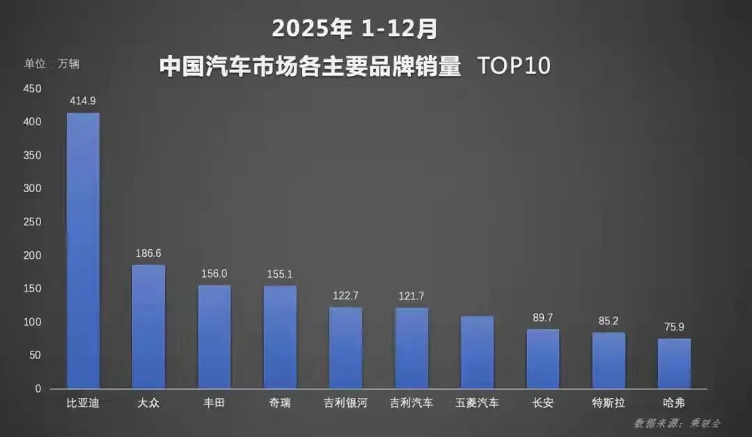 王传福赢麻了!比亚迪全球四连冠!不加任何定语!其实就算加定语又何妨!单月销量TOP10,冠军!1~12月销量TOP10,又是冠军!单月新能源汽车销量TOP10,还是冠军1~12月新能源汽车销量TOP10,仍然是冠军!定语越多,赢得越多!无论是国内的断崖式领先,还是全球车市的一骑绝尘!比亚迪已经把中国汽车工业推向了世界之巅!聚焦国内,把合资车按在地上摩擦,一众拉两田(大众,特斯拉,丰田,本田),全都被甩在了身后!放眼全球,传统豪车被逼在了墙角苟延残喘!海外建厂,自建船队,比亚迪让中国智造遍布五湖四海!