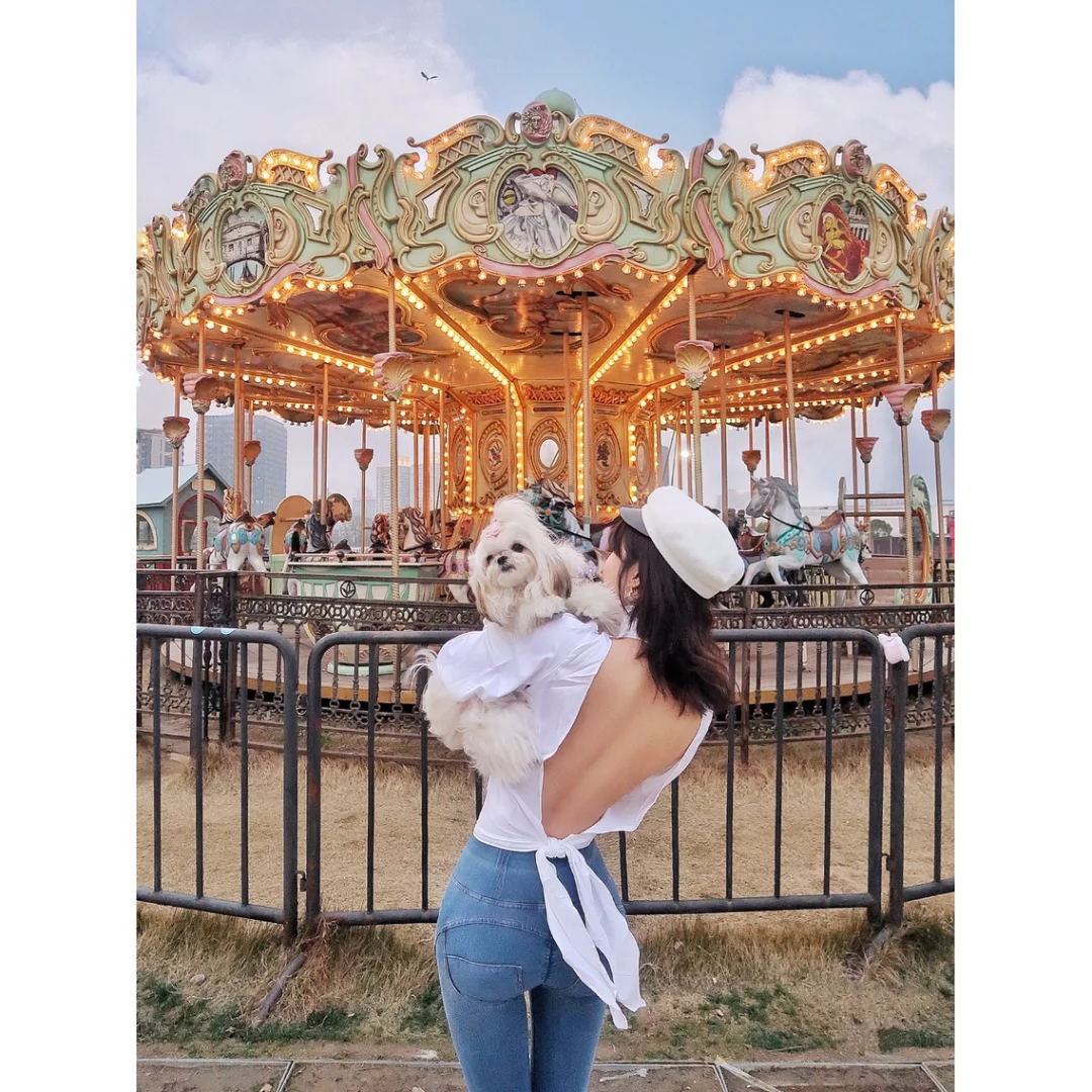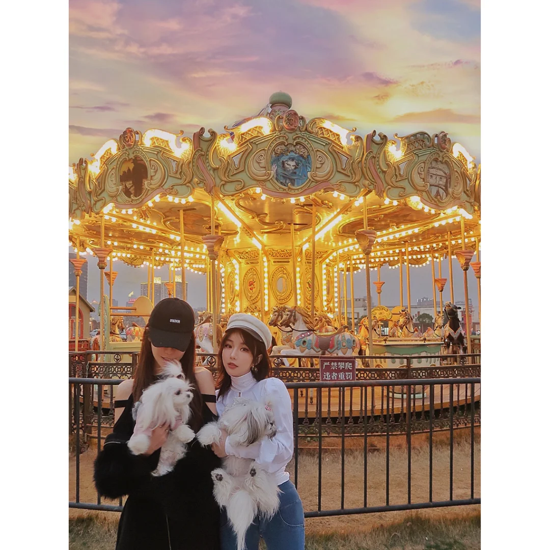 🎠门口就有个小型旋转木马,整点开放一次,傍晚以后就开灯了非常好看!阴天也没关系!天空可以用quickshot P上去!照片一下上升一个档次!