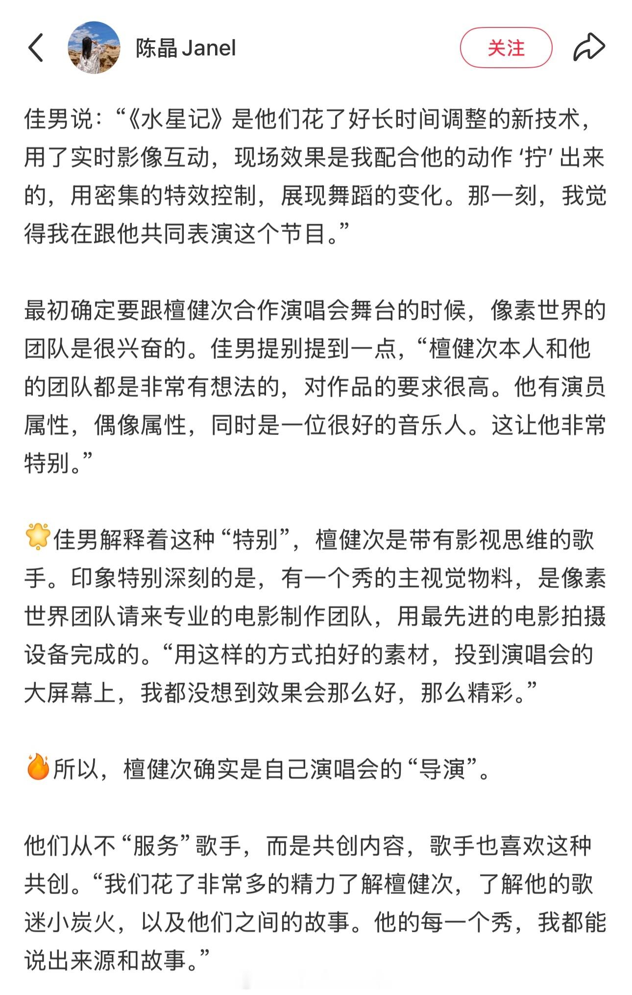 檀健次《多见一次》演唱会幕后的故事像素世界团队提到的檀健次檀健次本人和他的团队都是非常有想法的,对作品的要求很高。他有演员属性,偶像属性,同时是一位很好的音乐人。这让他非常特别。檀健次是带有影视思维的歌手不管在影视还是舞台上,都力争做到品质最好的檀健次👏