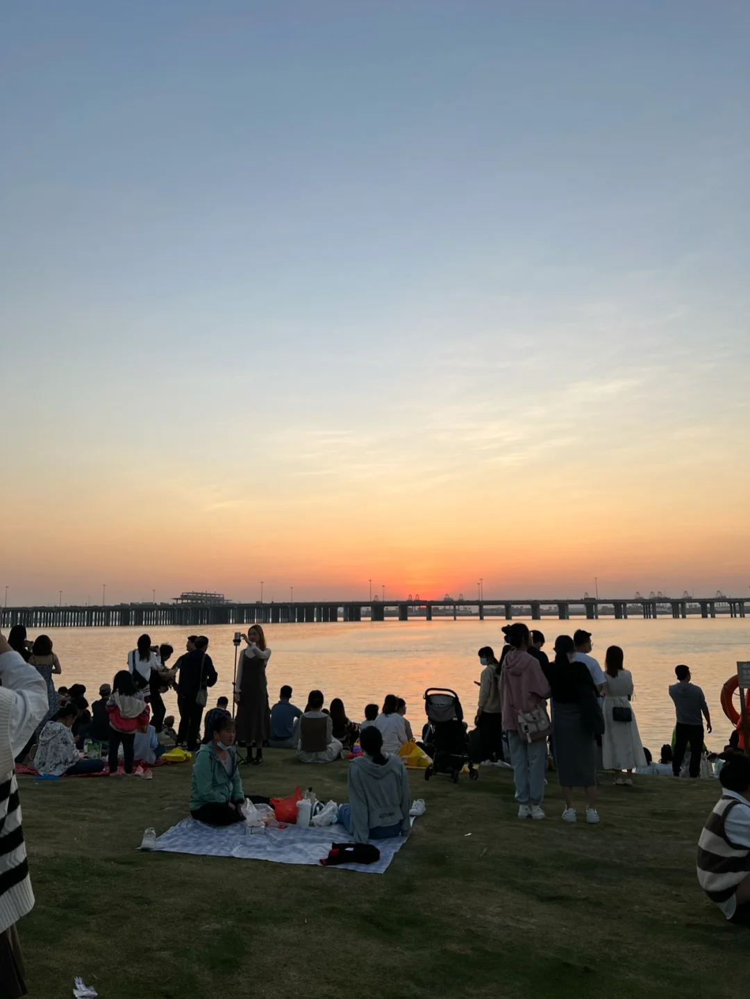 海边挤满了看夕阳的人