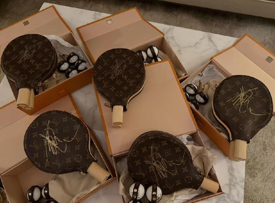 王楚钦这波时尚联动帅炸了! 头头跨界看展状态满分,简单白T配阔腿裤,随性又帅气,和友人同框比赞的样子活力满满! 还有这一桌子LV定制球拍,每一支都带着他的亲笔签名,这排面直接拉满!期待新的一年,不管是赛场还是时尚场,头头都能继续大放异彩!✨ 王楚钦 国乒 时尚跨界
