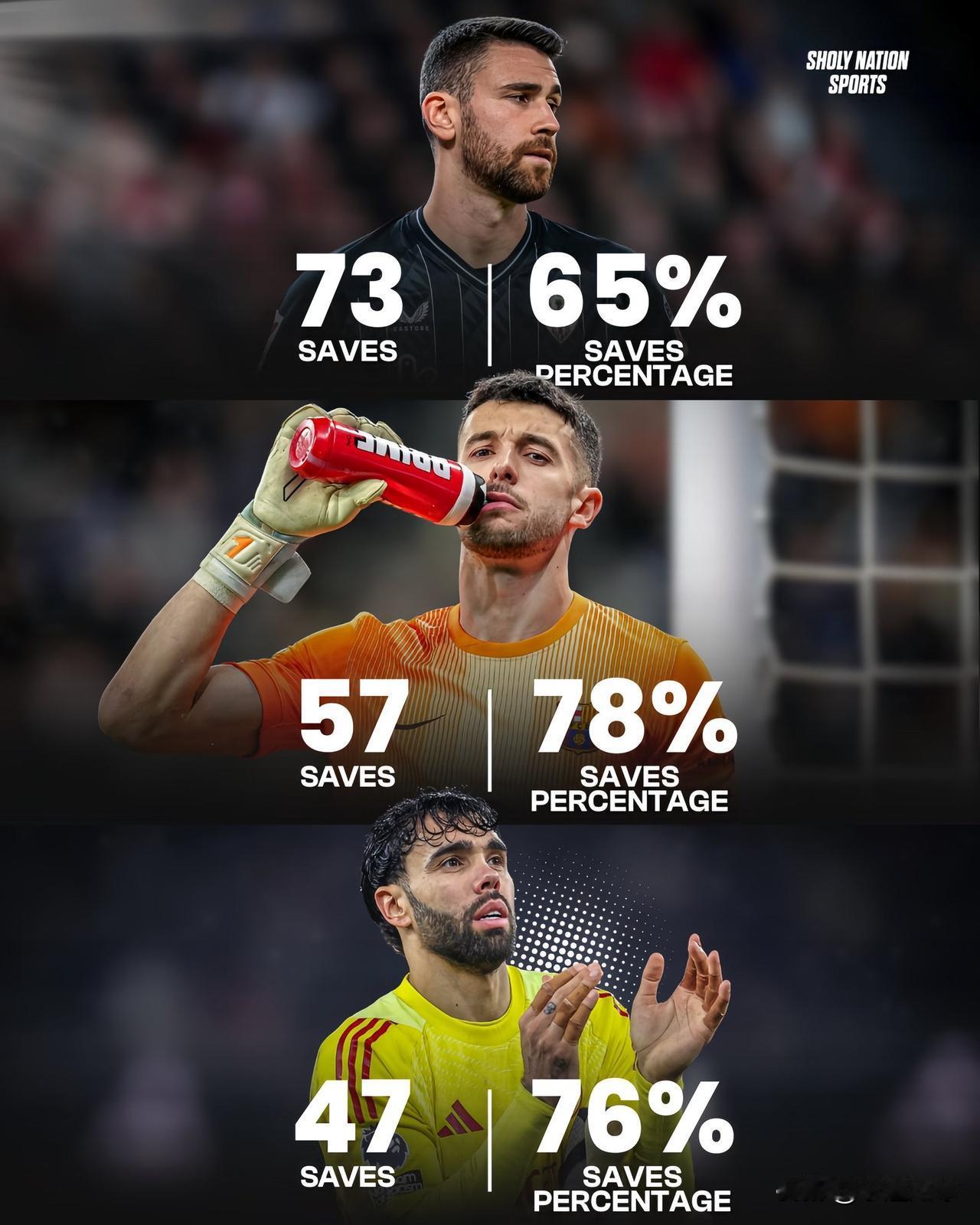 加西亚、拉亚与西蒙本赛季数据对比: 胡安·加西亚:🧤 57次扑救,📊 扑救成功率 78% 大卫·拉亚:🧤 47次扑救,📊 扑救成功率 76% 乌奈·西蒙:🧤 73次扑救,📊 扑救成功率 65% 西班牙男足国家队主帅德拉富恩特目前主要依赖的三名门将,他们在门线前都表现稳健 。