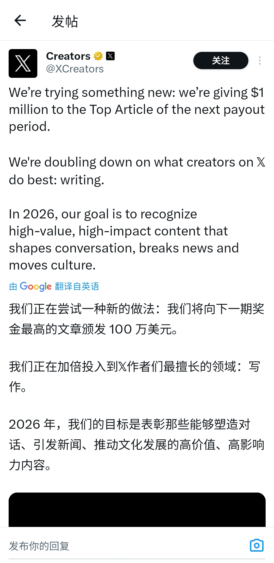 马斯克要给出色的文章创作者奖励100万美元