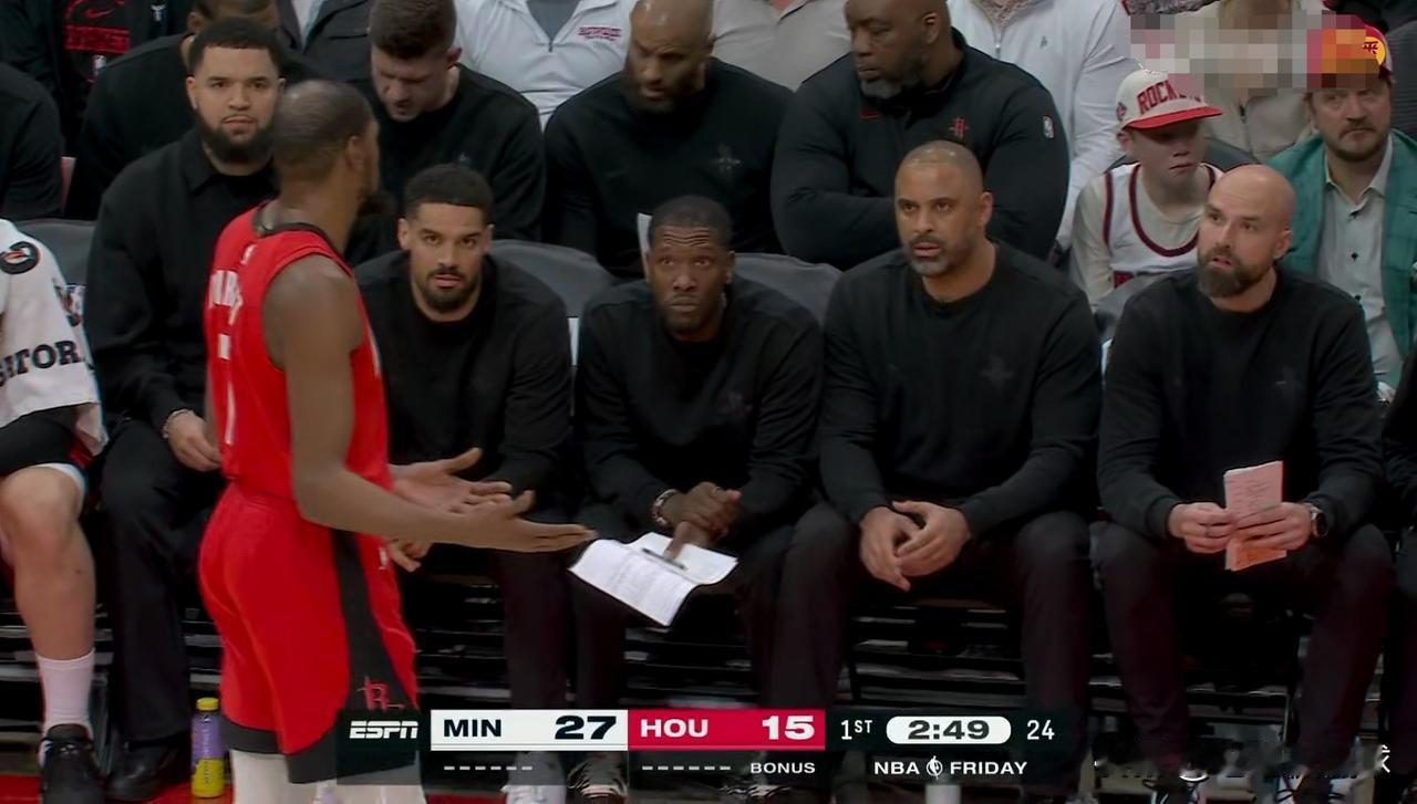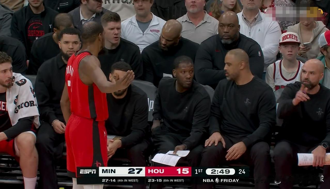 火箭巨星杜兰特终于向主帅乌度卡开炮了!在今天火箭主场迎战森林狼的焦点战中,当时比赛进行到了第一节的2分49秒,火箭以15:27落后于对手,形势看起来有些不乐观。当阿门-汤普森执行罚球的时候,杜兰特直接来到火箭的教练席摊手质问主帅乌度卡,对于杜兰特的质问,乌度卡教练竟然哑口无言,只见乌度卡教练一直看向自己的教练团队。 从杜兰特的举动来看,他对乌度卡教练在攻防两端的战术布置是非常不满的。