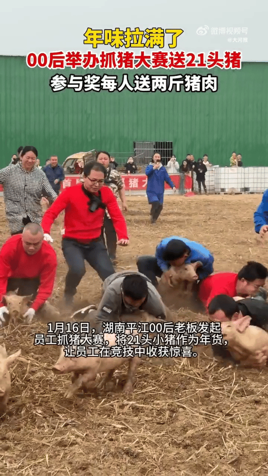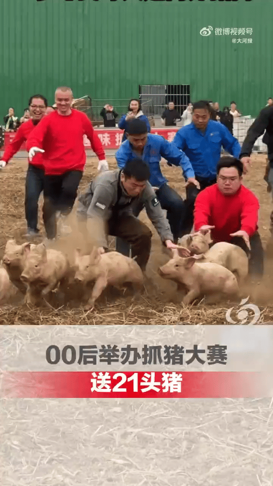 00后举办抓猪大赛送21头猪一工厂办抓猪赛送21头活猪 00后还真是会玩,只能说这老板我很喜欢,算是最好的年货之一了,就是可怜了那21头猪!
