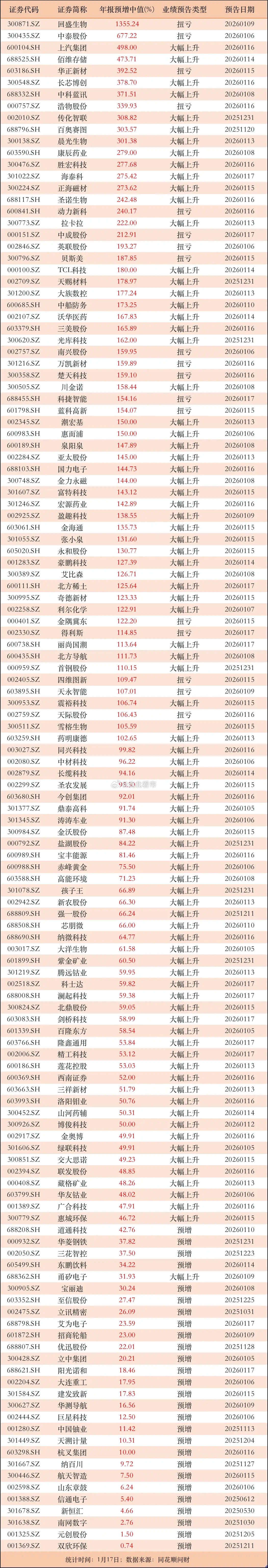 陆续出炉!年报预告大增,已有63家公司业绩预增100%以上随着月底的临近,已经有一批年报业绩预告陆续陆续出炉。有些公司年报业绩大幅预增,也有些公司业绩则出现承压的情况。其中年报预增的公司数量,已经突破了100。截至1月17日,沪深两市已披露年报业绩预增的公司,共有139家。如果不算ST股及尚未上市的新股的话,仍超过130家。业绩预增的公司当中,不乏预增50%甚至100%以上的公司;年报预增中值在100%以上的公司就占了63家,接近目前预增总量的一半。目前年报业绩预增的公司,有不少是科技公司占,比如AI算力公司、芯片相关公司、创新药公司以及新材料相关公司。目前年报预增相关数据,如下。客观总结,仅供参考!