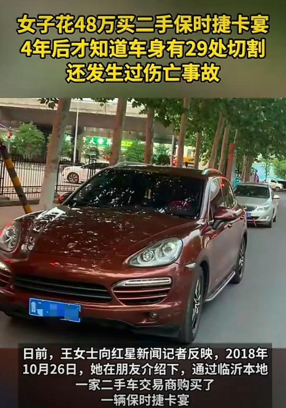 女子买二手卡宴被隐瞒伤亡事故4年这直接按诈骗处理吧事故车,调表,车身切割,事故中有人伤亡…这样的车按正常车卖,还让这任车主开了4年这朋友,我的建议是直接绝交吧