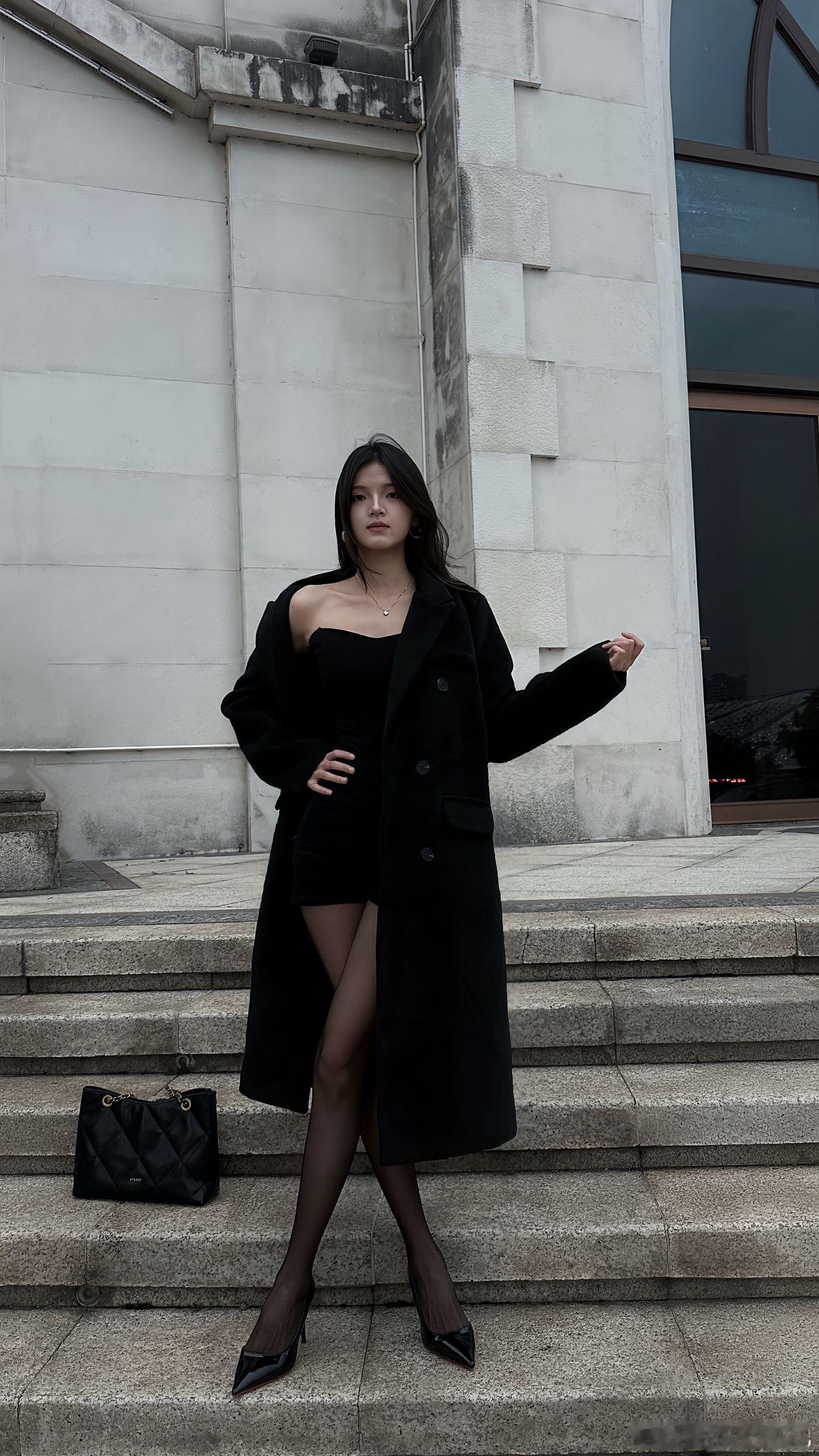 挂脖黑裙杀!辣妹街拍的氛围感密码露背设计小秀性感,紧身剪裁精准贴合身形,膝