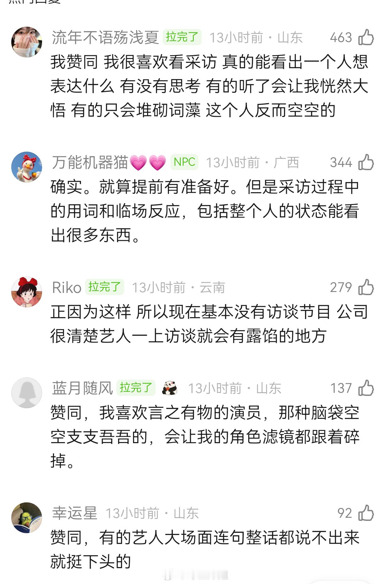 了解一个艺人最好的方式是看访谈 有的艺人大场面连句整话都说不出来就挺下头的