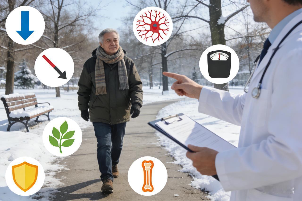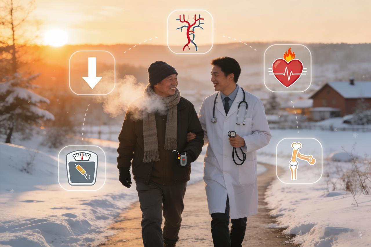 糖尿病人冬季走路 6 大好处,医生:比吃药还稳 【最新发现】天冷坚持走路锻炼的糖尿病人,不用多久,或有6大好处“不请自来”! 凛冬已至,寒风刺骨,许多糖尿病患者因惧怕寒冷或担心血糖波动而蜷缩在暖气房里。然而,最新研究与临床观察表明,寒冷季节其实是控糖的“黄金期”,坚持户外走路锻炼,不仅不会加重病情,反而能激活身体的自我修复机制。只要掌握科学方法,不用多久,六大改变将悄然发生。 第一,血糖“去峰填谷”,平稳度显著提升。冬季食欲大增,血糖易如过山车般剧烈波动。坚持快走能直接刺激肌肉收缩,促进葡萄糖转运蛋白(GLUT4)转位,即便在胰岛素分泌不足的情况下,也能像“人工胰岛素”一样高效消耗血糖,降低糖化血红蛋白。 第二,血管“年轻化”,心梗风险骤降。冷天血管收缩,血液黏稠。走路时的血流加速能产生“剪切力”,机械性地冲刷血管内壁,减少脂质斑块沉积,有效预防下肢动脉硬化,让血管弹性重回年轻态。 第三,血压“由高转低”,告别晨起危机。冬季是高血压高发季。规律的有氧步行能调节植物神经,降低交感神经张力,使扩张血管的物质分泌增加,从而平稳降低收缩压,避开心脑血管意外的“清晨魔鬼时段”。 第四,肌肉成“储糖库”,减脂又增肌。下肢肌肉是人体最大的糖代谢器官。坚持步行能逆转“肌少症”,提高基础代谢率,让身体在静息状态下也能持续燃烧糖分,告别腹型肥胖。 第五,睡眠“深度重启”,修复内分泌。冬日阳光下的步行能调节褪黑素分泌周期,配合适度的身体疲劳感,能有效治愈糖尿病常见的顽固性失眠,睡眠好了,胰岛素抵抗自然缓解。 第六,情绪“拨云见日”,驱散抑郁阴霾。冬季易伤感,户外行走产生的内啡肽是天然抗抑郁药。融入走步群体,不仅能排解孤独感,更能通过社交互动建立战胜疾病的信心。 专家提醒: 冬日走路讲究“微汗即止”,避免大汗淋漓导致阳气外泄。选择下午2-4点气温较高时段,配合防滑鞋与充分热身,让双脚走出一条温暖的健康之路!