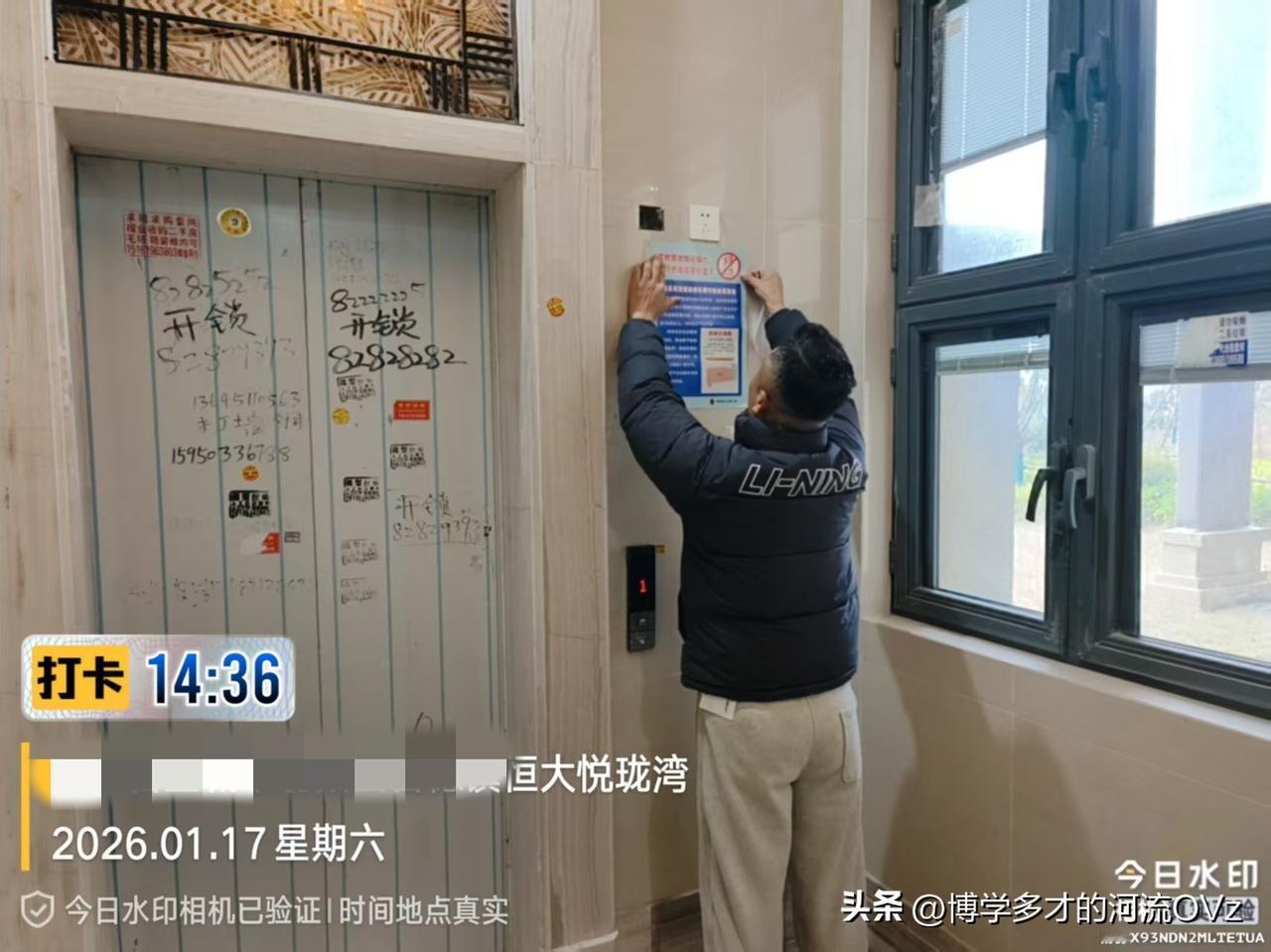 今天是金碧物业走后的第78天。 早晨网格员开车在小区里面巡视了一圈,把存在的一些问题拍了照片发在群里面。比如路上乱抛乱扔的垃圾袋和垃圾。电瓶车停在1楼大厅里面,7号楼8号楼的2单元大厅里面都停了电瓶车。 我住在1单元,看见了乱停电瓶车在大厅里面的,就会立马把它推出大厅,停在马路对面,让他们远离大楼,但是2单元我管不了它,他们也没有人有这样的意识。我们整个小区有11个单元,只有两个单元出现了这种乱停乱放的现象,应该说比那个时候进步多了。 下午他们又到各个单元张贴禁燃烟花爆竹的宣传画报,这是公安局让张贴的,因为我们小区也在城区里面,属于禁燃禁放的区域。 下午闻到了我家打扫卫生。自然不能把话给别人讲,把它打扫得干干净净物业小区 网格员说大家再坚持坚持,新物业会到来的。还有业主说。根据天气预报,下周可能会有暴雪急剧降温,所以要防止消防爆掉了,如果消防爆了,没人维修。但也有业主说,可以找应急管理局。
