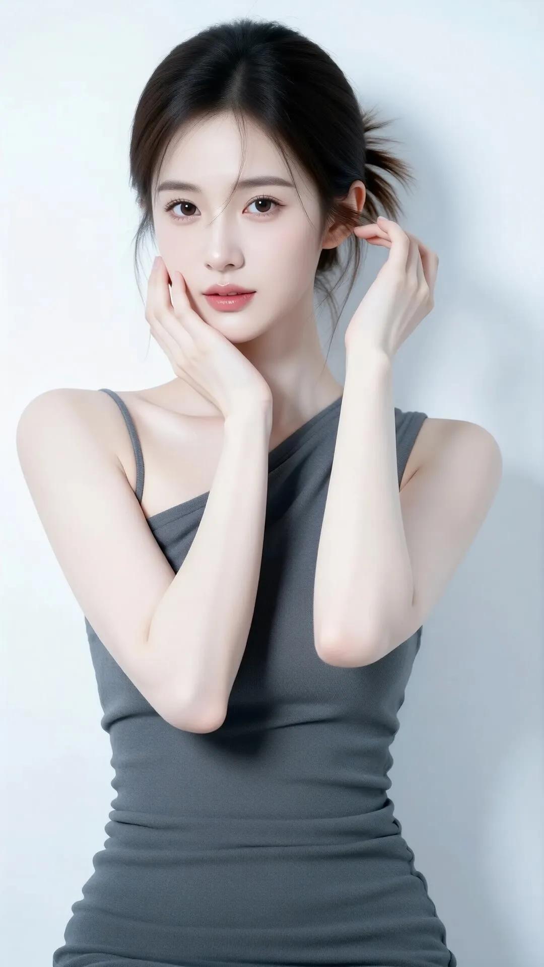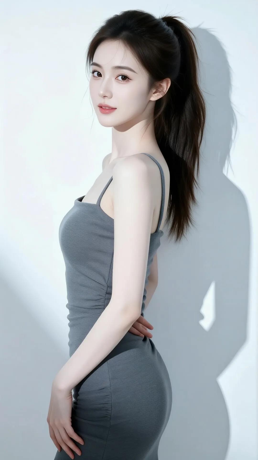 优雅气质,灰色连衣裙,简约时尚,完美曲线,女神范儿十足!