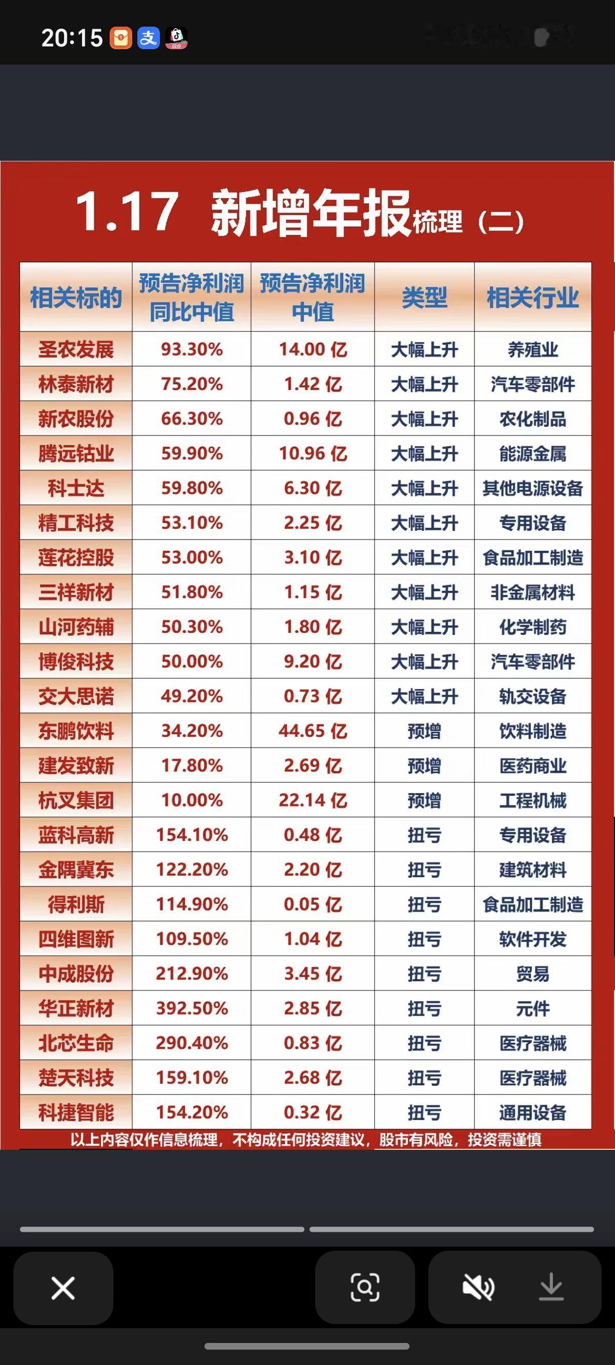 1.17周六晚间 最新:新增年报业绩汇总! 42家公司披露25年报,其中30家公司业绩大增超50%以上,3家预增,9家扭亏为盈。 扭亏为盈得值得关注。