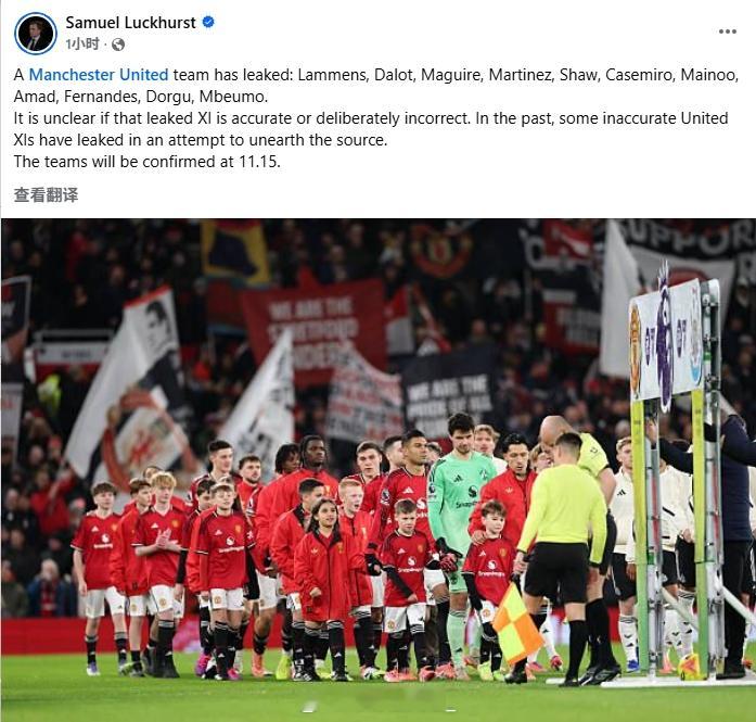 又有内鬼?曼联德比战首发提前1个半小时被泄露 与最终版一模一样曼联首发:31-拉门斯、2-达洛特、5-马奎尔、6-利桑德罗、13-多古、23-卢克肖、18-卡塞米罗、37-梅努、8-B费、16-阿玛德、19-姆伯莫曼联vs曼城英超联赛