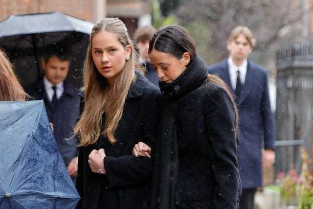 西班牙王室 🇪🇸希腊王室 1月17日,费利佩国王、莱蒂齐亚王后、索菲亚王后、阿斯图里亚斯公主莱昂诺尔、索菲亚公主、艾琳娜公主、克里斯蒂娜公主出席在马德里圣安德烈和圣德米特里的希腊东正教大教堂的艾琳公主告别仪式。胡安·卡洛斯国王没来,但是他的亲戚们都挺给面子的。离婚的、坐轮椅的都来啦……世界各国王室王室葬礼 西班牙王后莱蒂齐亚 西班牙公主莱昂诺尔 西班牙索菲亚公主 大侄女希腊阿丽西娅公主和表姐们一起进场。