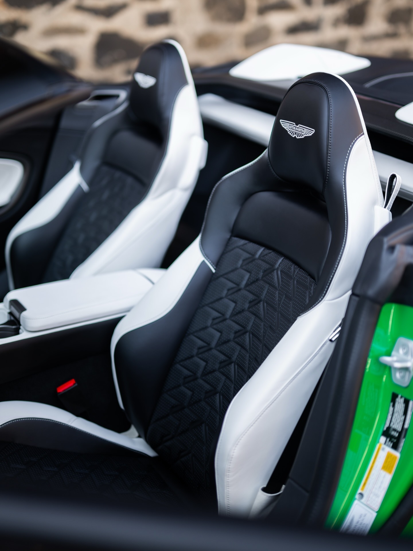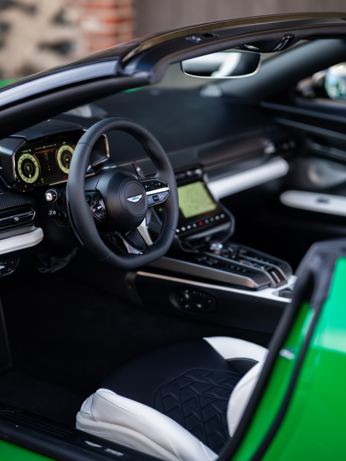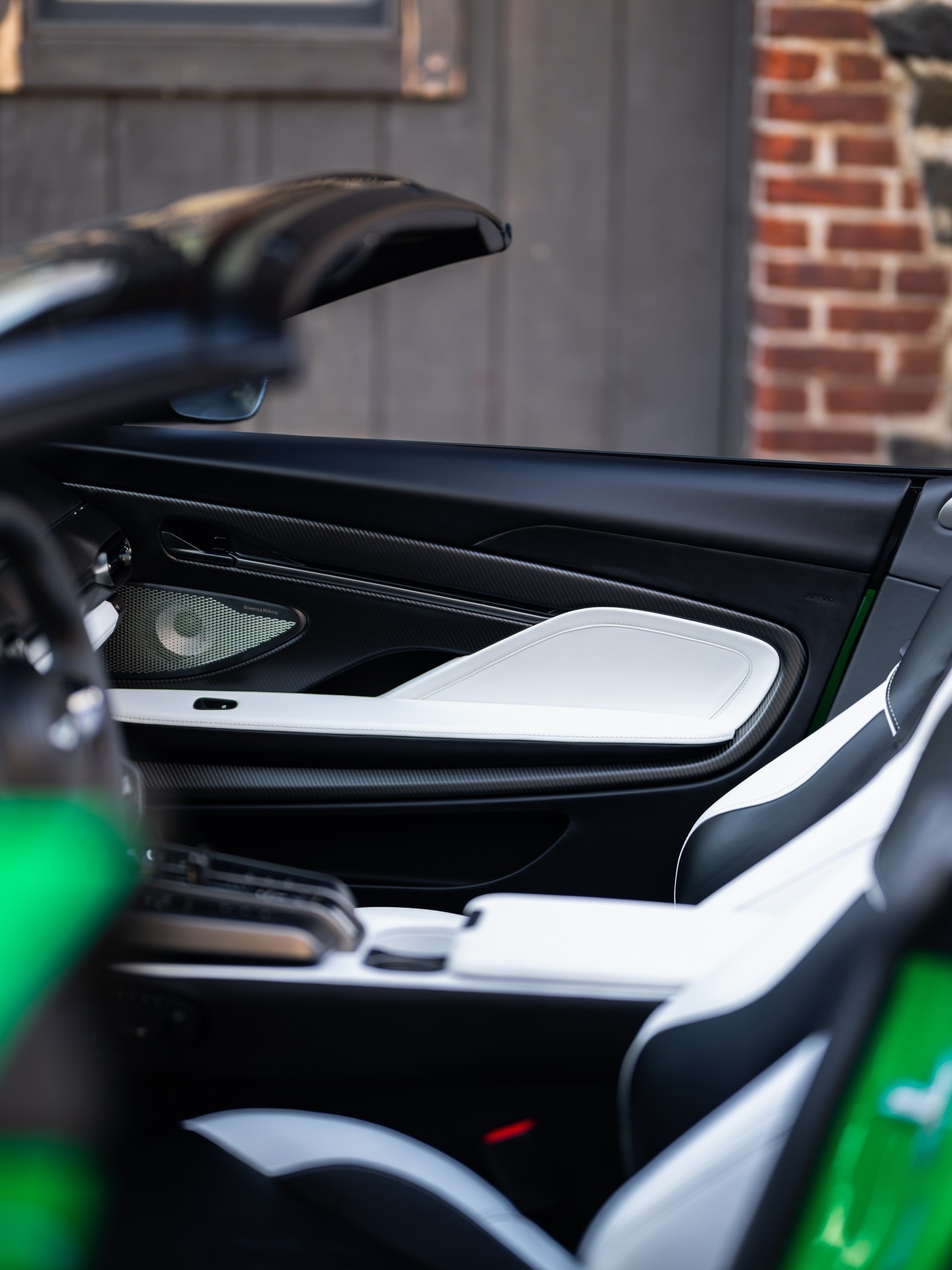 2026年款Aston Martin Vanquish Volante。该车选用Sprint Green漆面,全车黑色碳纤维隔热,白色装饰的气动部件,以及Onyx Black与Glacier White相间的皮革内饰,堪称你见过的最独特的Vanquish之一。阿斯顿马丁vanquish老纪侃车豪车超跑 厦门·SM城市广场
