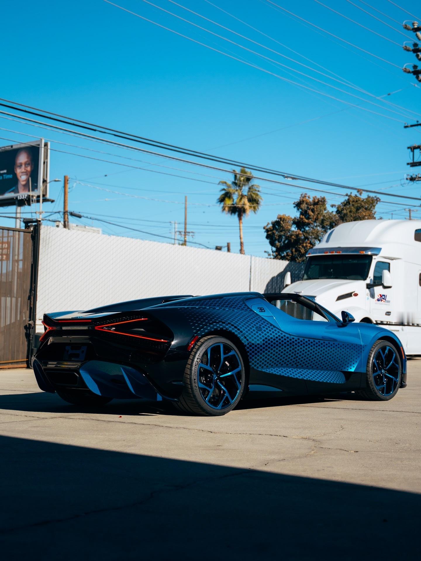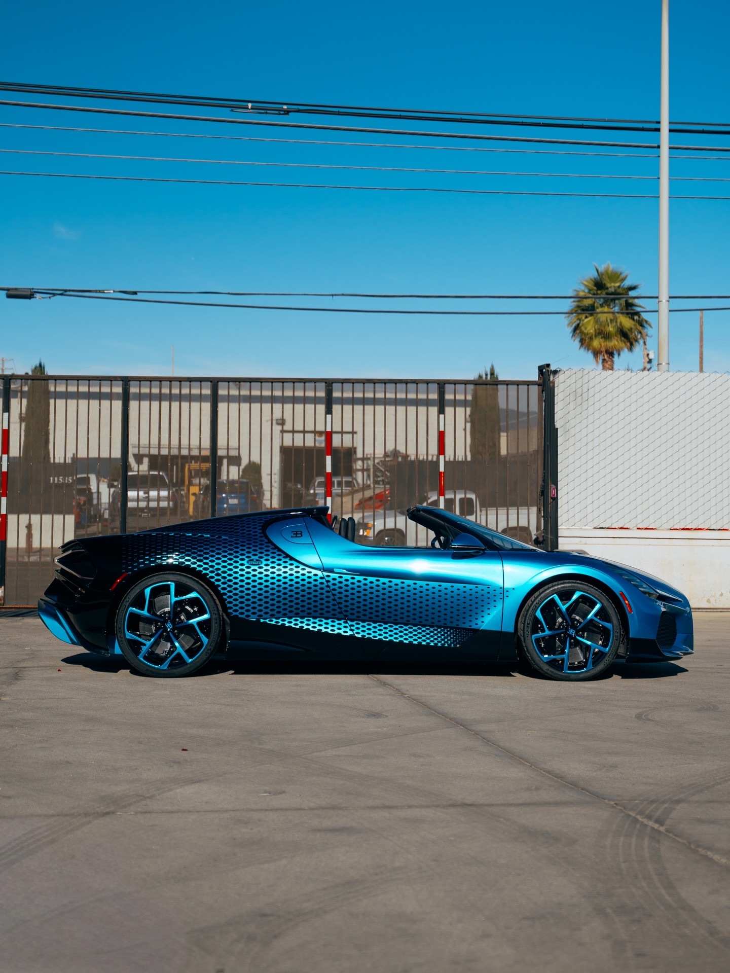介绍M7.024——即将交付的最新款Bugatti Mistral。采用了独特的蜻蜓蓝与夜曲黑的喷漆方案,这款敞篷车是对定制工艺和W16引擎驱动的优雅的鲜明表达。布加迪Mistral豪车超跑老纪侃车