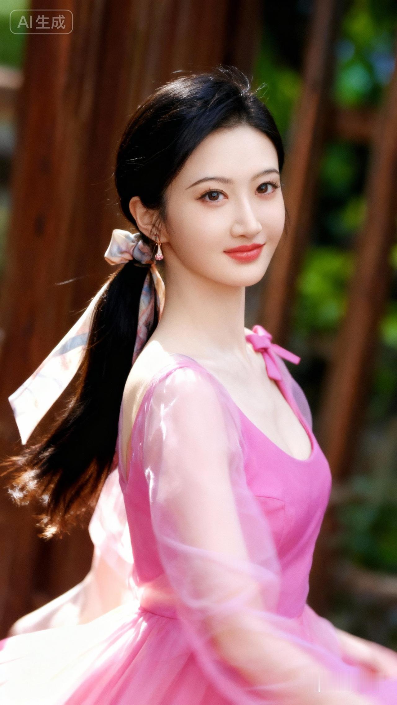 粉嫩少女心,甜美粉裙,梦幻森林中,少女微笑,宛如童话里的公主。