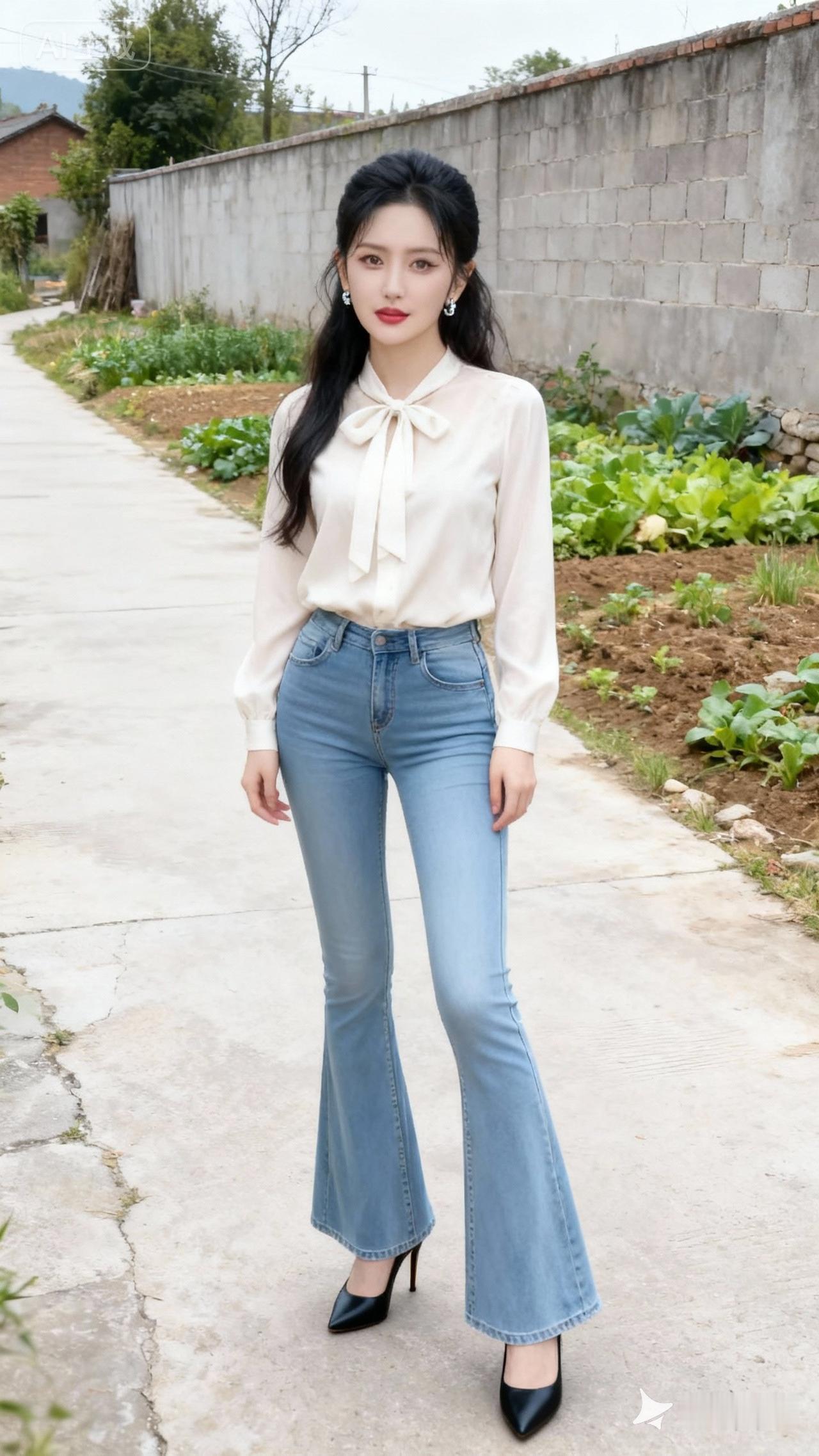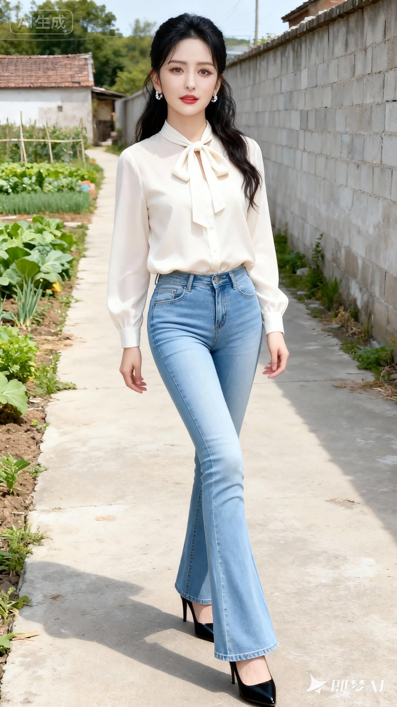 清新田园风穿搭,白色衬衫+牛仔裤,轻松自然,尽显青春活力!🌿👗👠