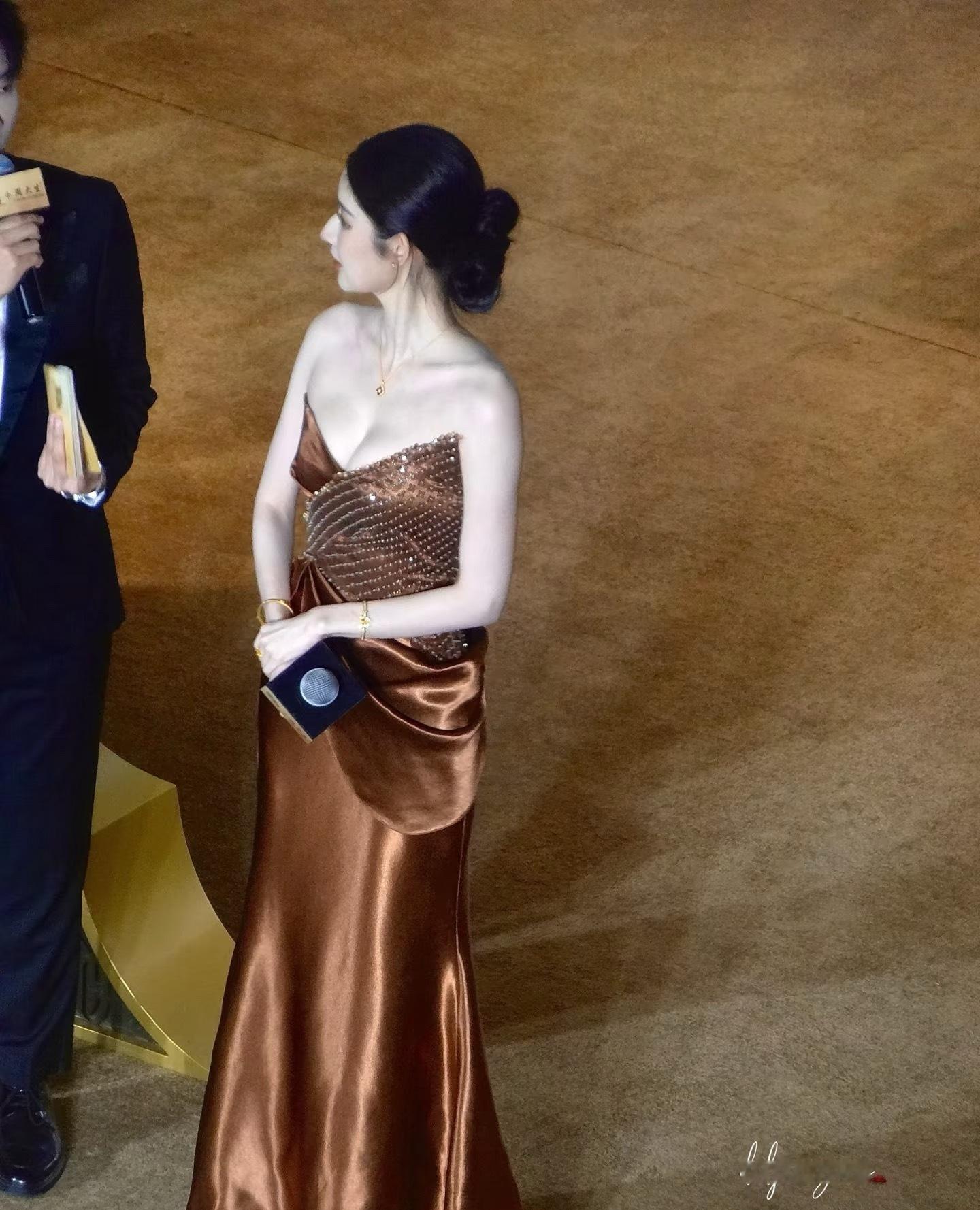 刘亦菲很少人拍这种包臀皮裙配一字带高跟的美照哎!她这种略微丰韵的高挑身材其实蛮适