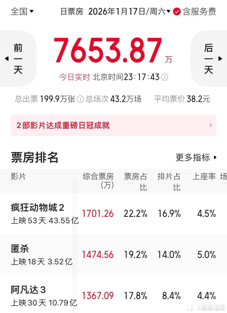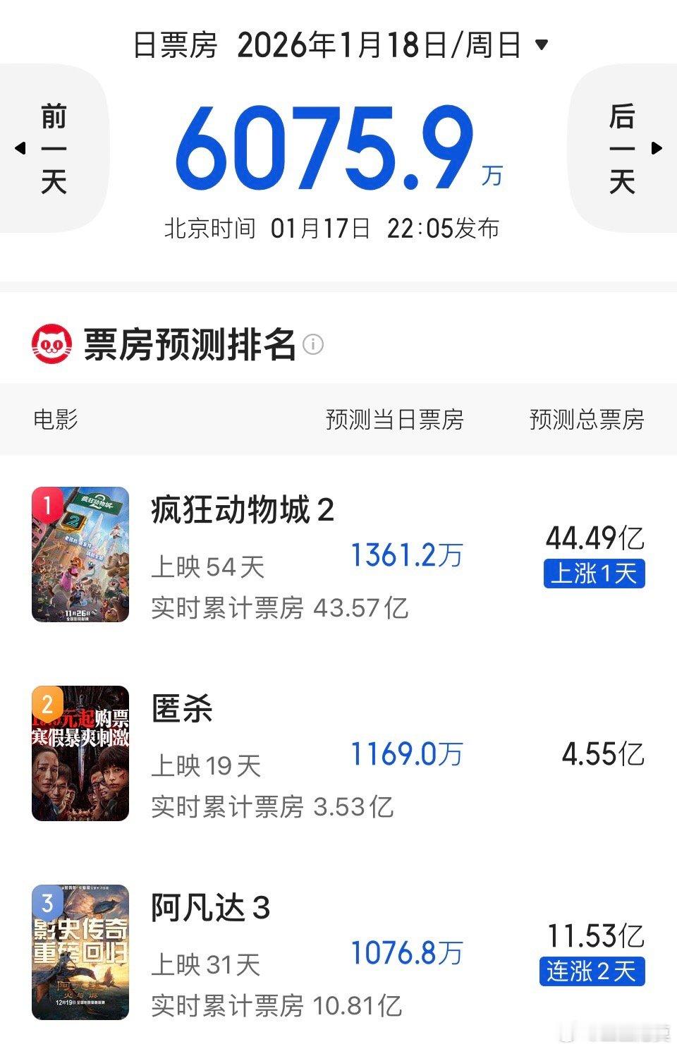 还有一个月才春节,《疯狂动物城2》还是有可能冲一下45亿吧。《阿凡达3》估计能12亿就不错了。