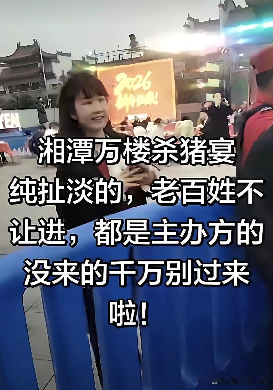 杀猪饭,原本是民间习俗,象征着团圆和丰收,没想到办成这样子。 16日下午,杀猪饭在湘潭举行,网友本想凑热闹看看,没想到现场只允许主办方进入,外人想观看都没得门,跟封闭小区似的。宣传得浩浩荡荡,实际体验一个比一个差。民间习俗让大家享用热乎乎一碗,不说大碗,让普通民众吃个饱,都得吃盒饭。 更夸张的是,湘潭一网友骑着电动车从长沙赶来,只给半勺辣椒炒肉,一碗米饭,感觉自己才是那只猪。网友点评,半碗米饭算什么丰盛大餐,本是民间习俗的活动,办得不堪入目。 杀猪饭本是民间习俗,现如今却被商业化,被流量追逐,搞得不成样子。甚至网友怀疑,主办方搞杀猪饭,是不是别有用心,搞慈善倒像是披着羊皮的狼。搞得这样子,谁还想浪费时间前往凑个热闹?