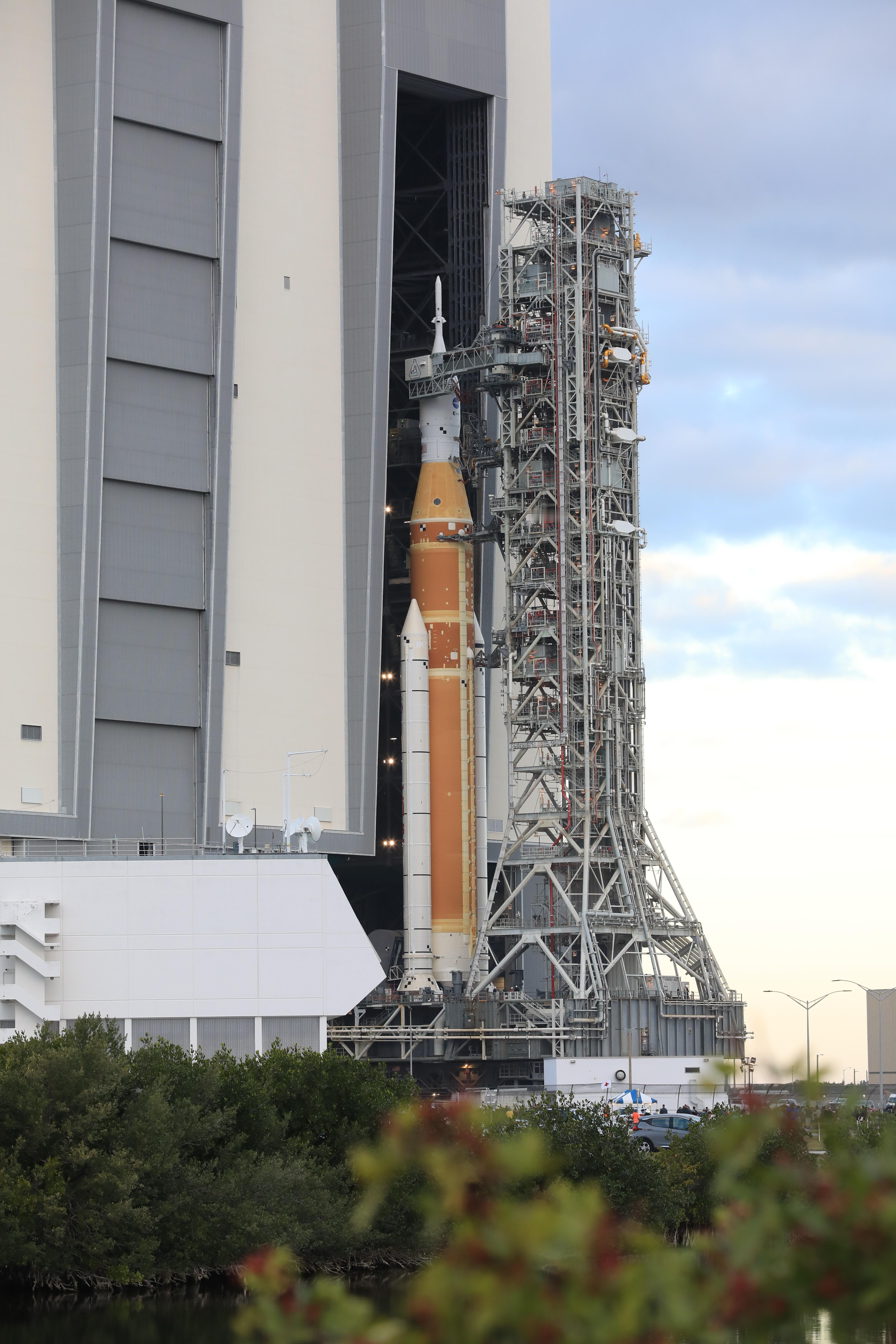 VAB已开门,目前计划于20:00开始转运SLS运载火箭。