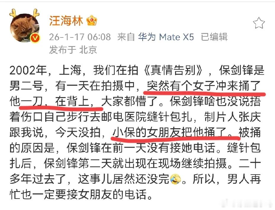 编剧汪海林爆料,说保剑锋以前被黄慧颐捅过一刀,我的天,这也太……了吧!能让一个