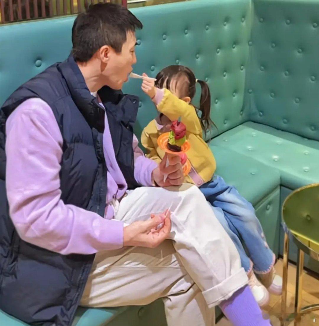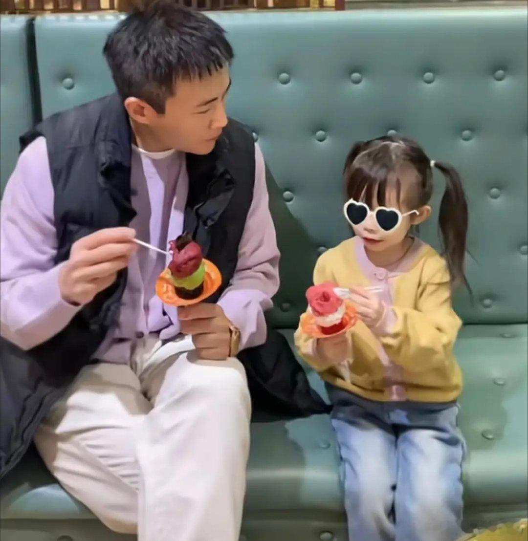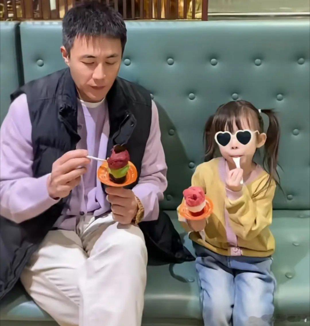 杜淳去商场吃冰淇淋,戴大金表抱4岁小蛋饺亲脸,真是“女儿奴”