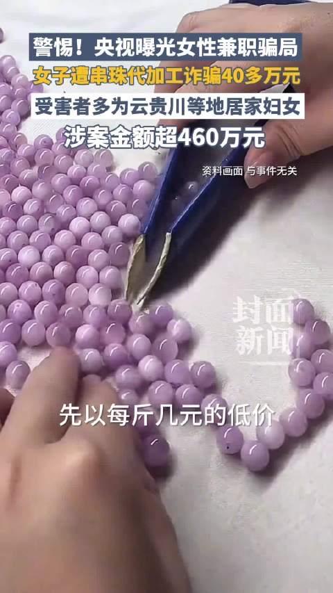 “在家串珠,日赚百元,带娃赚钱两不误!” 当这样的广告出现在宝妈群、兼职群,谁能不动心?央视最近曝光的“串珠兼职”骗局,撕开了一场针对普通人的精准围猎——四川宝妈张女士被骗40万,全国70余人中招,涉案金额超460万,背后的套路比你想象的更黑心。 这些骗子最懂人性的软肋:你想要的是补贴家用的踏实钱,他们瞄准的是你全部的积蓄。刚开始,380元材料包真能退本还赚40元,张女士前两次投入都顺利拿到返利,甚至赚了800元。这种“小恩小惠”就像温水煮青蛙,让你放下所有防备,等你觉得“靠谱”了,就会被诱导升级套餐,从几千到几万,直到你投入全部身家。更讽刺的是,那些所谓的“定制材料”,不过是骗子几元一斤批量收购的普通珠子,回收后拆了再卖,循环收割。 为什么宝妈、学生、老人成了重灾区?因为骗子掐准了这类人群的痛点:想赚钱又没时间,渴望低门槛机会,容易相信“姐妹互助”“踏实手工活”的话术。他们在社群里伪装成“成功案例”,晒收款截图、发加工视频,用“零门槛、无风险”的承诺编织美梦。可这世上哪有不劳而获的好事?那些让你“先交钱再干活”的兼职,从一开始就是陷阱。 更让人愤怒的是,骗子的手段极其隐蔽:用空壳公司背书,每两个月换一批员工,资金拆分成上万条流水躲避追查,甚至让“挂名法人”挡在前面,自己隐身幕后。等到受害者发现被拉黑时,辛苦串好的珠子成了废品,半辈子的积蓄打了水漂。张女士找亲友赶工一个多月,最后换来的却是“消息发不出、电话打不通”的绝望,这样的经历让多少人感同身受? 其实骗局的本质很简单:用小利换信任用信任套大钱。记住一个铁律:凡是要求“先交材料费、押金”的兼职,全是骗子!正规手工活从不会向个人收费,真正能赚钱的工作,也不会靠广告疯狂招人。 幸运的是,成都警方跨省追查,已经抓获邓某、郭某两名主犯。但更重要的是我们要擦亮眼睛,守住钱包。如果你身边有人还在相信“串珠赚钱”,一定要转发提醒;如果不幸被骗,立刻保留聊天记录、转账截图,拨打96110反诈专线报警。 生活从没有捷径,那些看似“轻松赚大钱”的诱惑,往往藏着最锋利的刀子。愿我们都能清醒识别陷阱,也愿骗子早日受到严惩,不让辛苦钱白白流失!你身边有人遇到过类似骗局吗?欢迎在评论区分享经历,提醒更多人避坑!