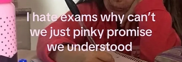 “我讨厌考试,为什么我们不能拉钩钩然后保证我们都会呢”