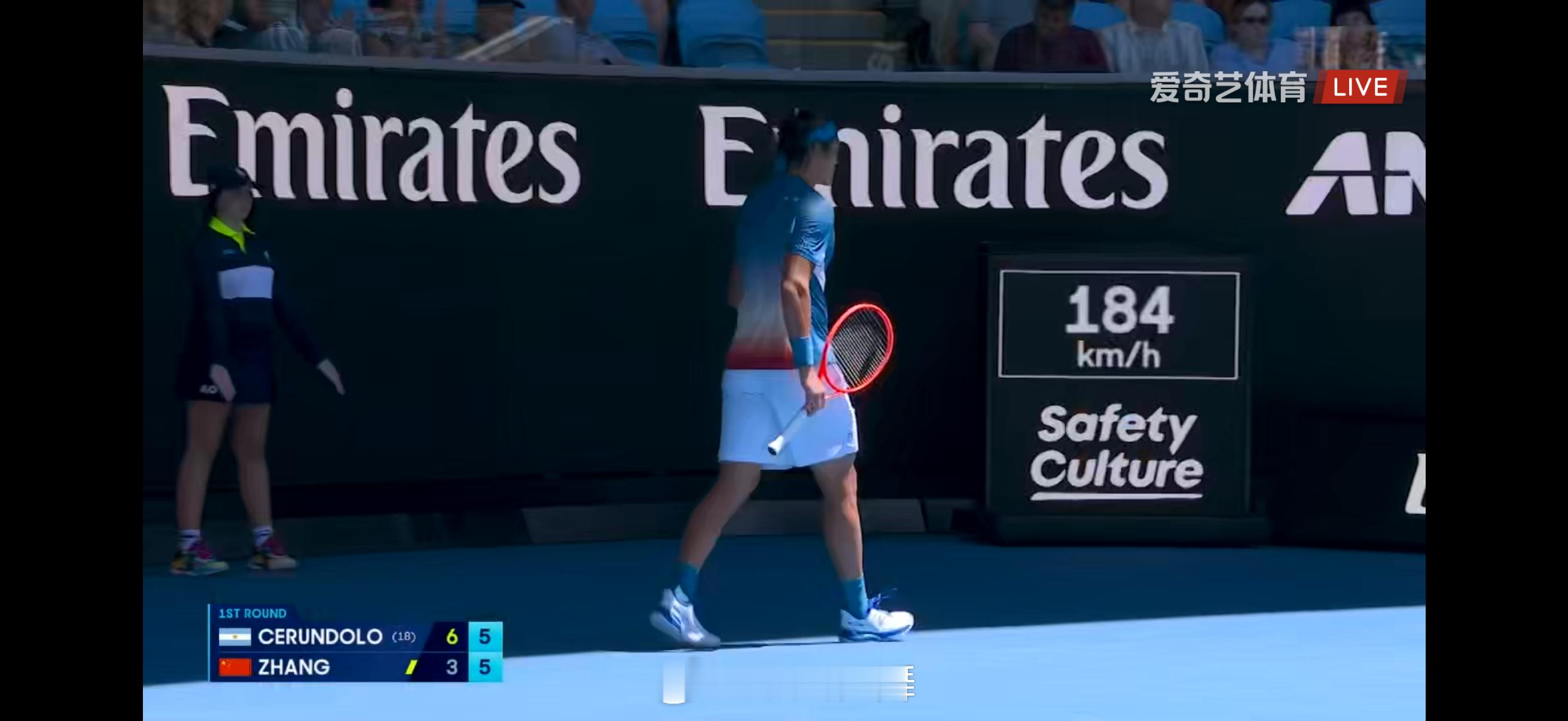张之臻第二盘破掉对手发球胜盘局,追到5-5!澳网2026张之臻vs塞伦多洛
